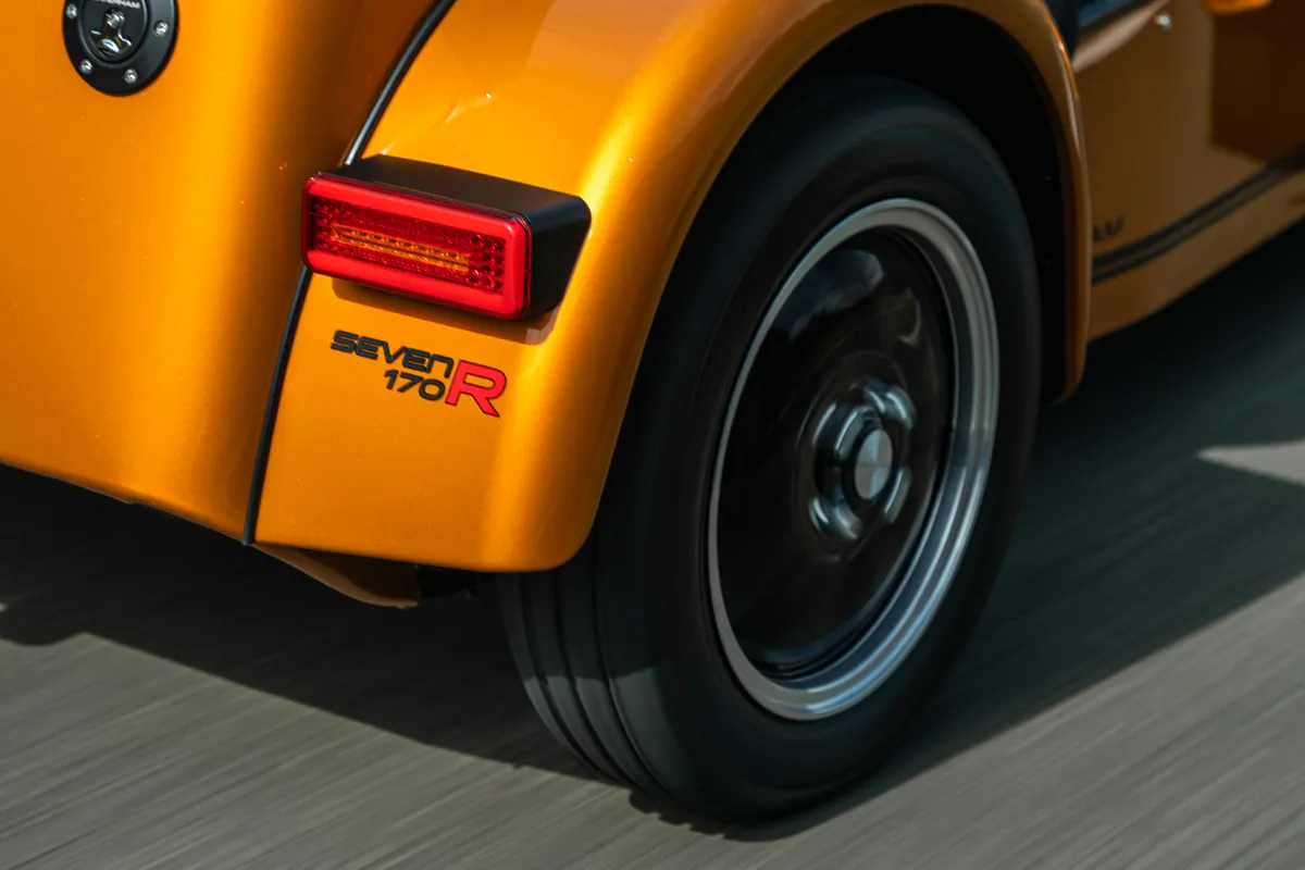 170R は前モデルのSEVEN 160 では選択できなかった追加バリエーションとなり、5速ギアボックス、スポーツサスペンションパック、14インチJunoブラックアロイ & ポリッシュドリップ + Avon ZT7 タイヤ、コンポジットレースシート、4 点式レースハーネス(車載)、LSD、Momo ステアリングホイール、カーボンダッシュボードが標準装備となります。
