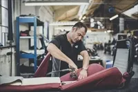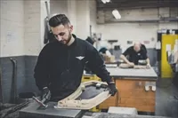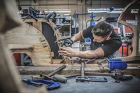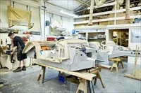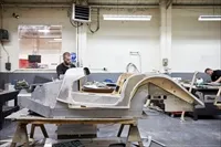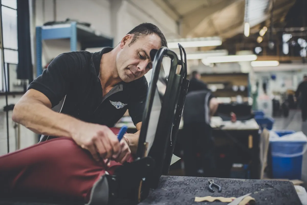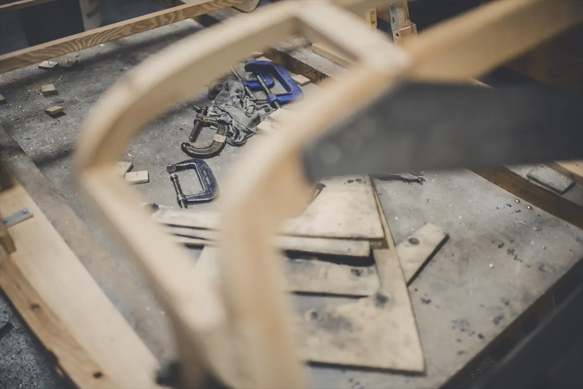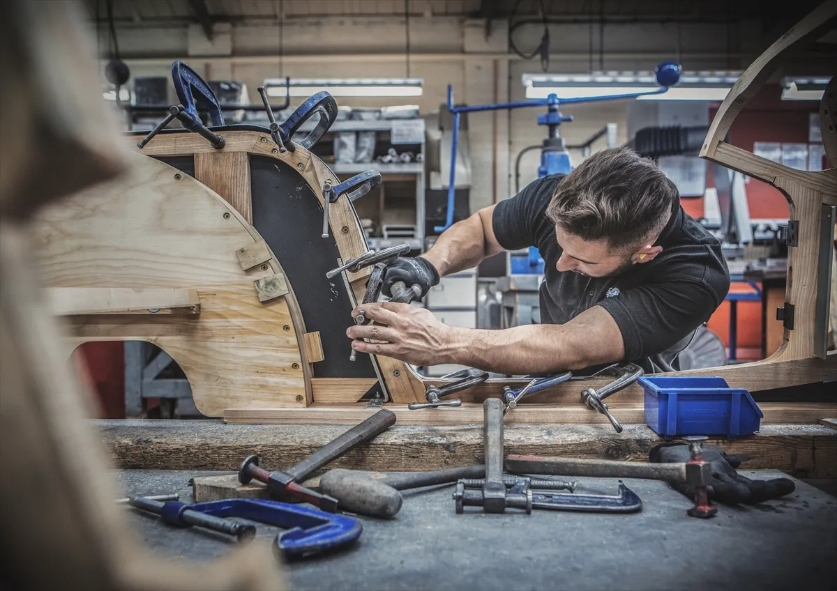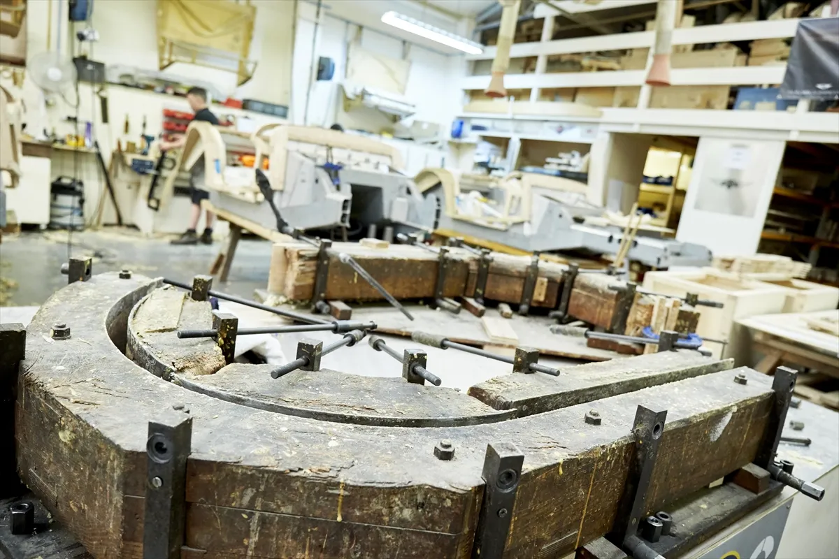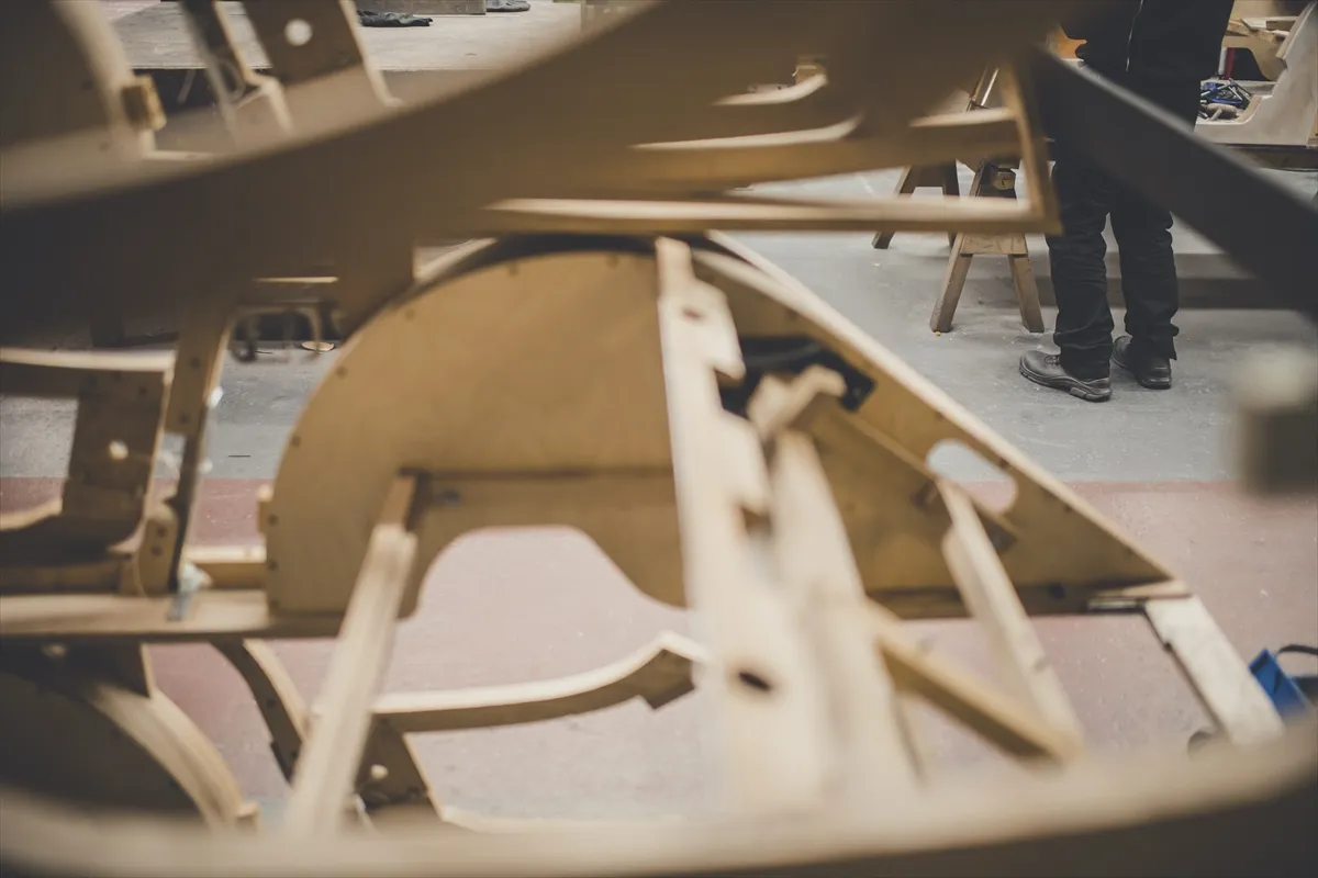 ファクトリーの内部は、建物やフロアごとに細かくセクション分けされ、主にアッシュ材、アルミ、革の3つの素材を用いて、一台一台丹念に、まるで芸術品のように手作業で制作、組み立て、調整されています。