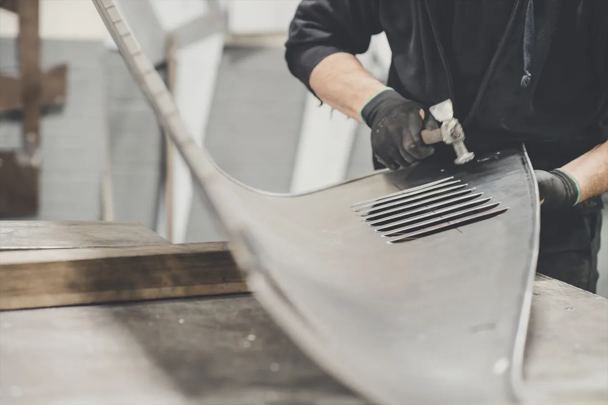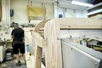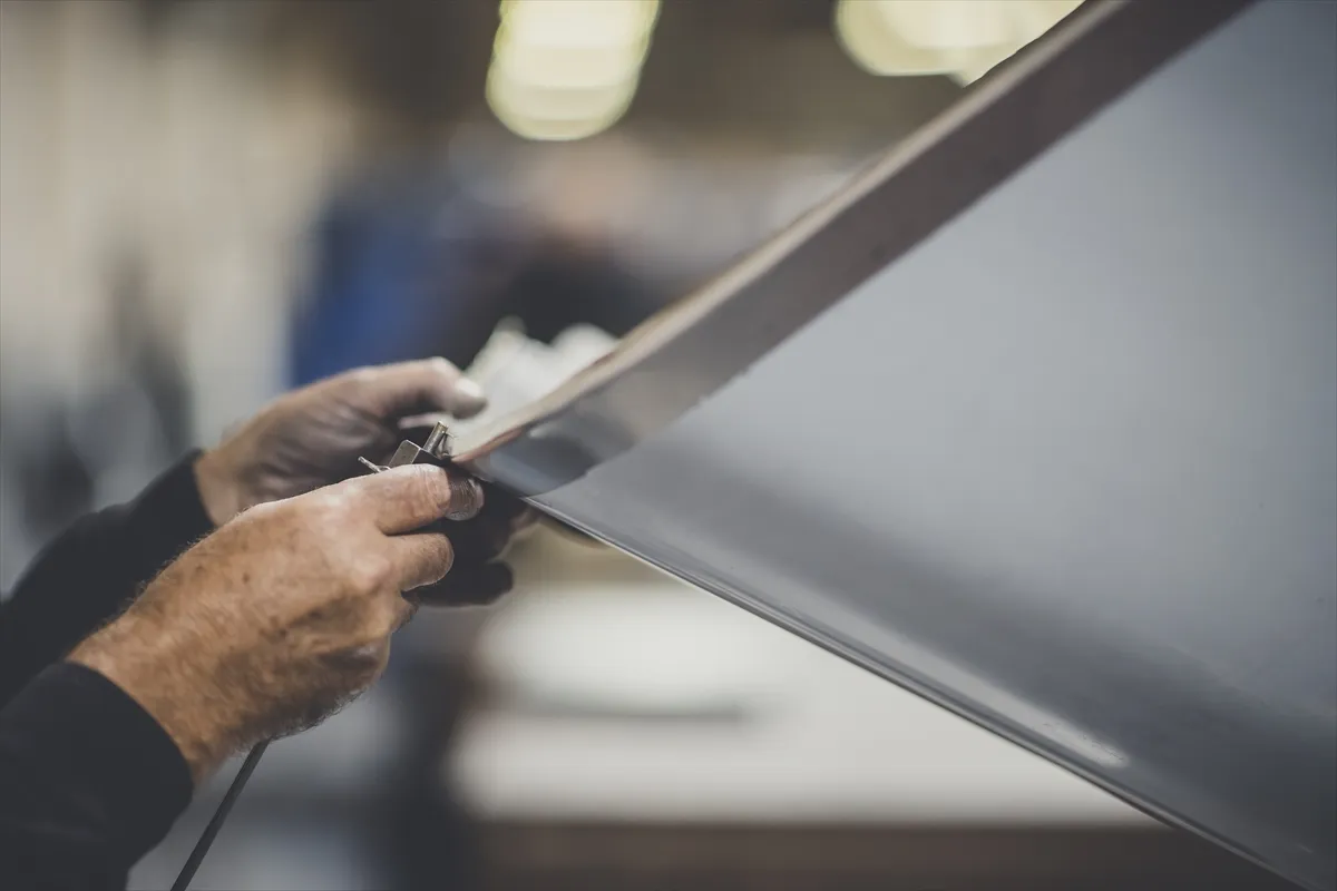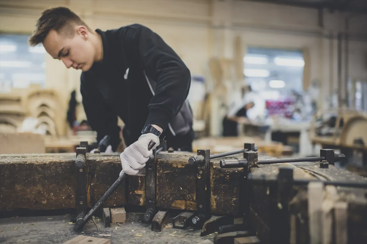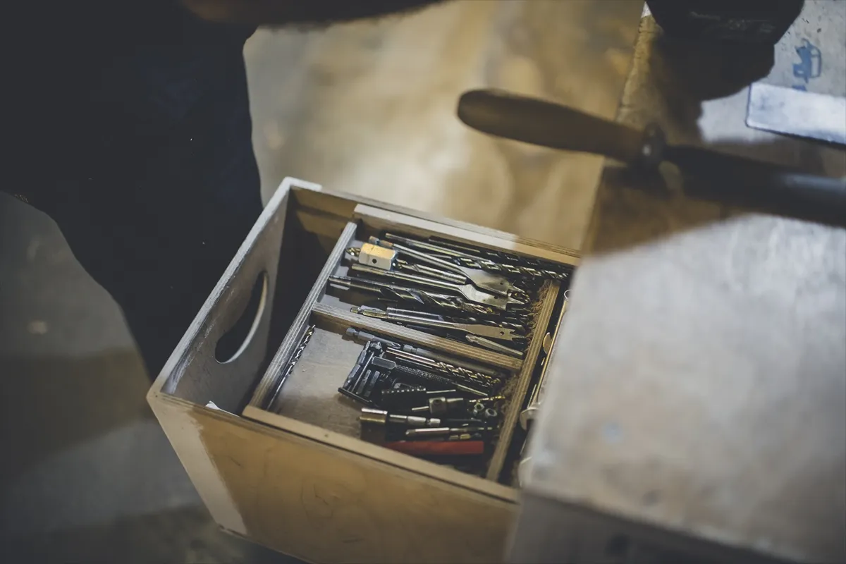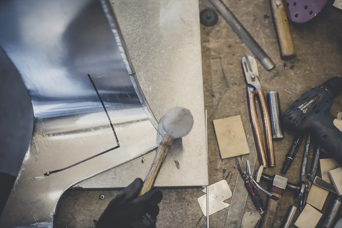 特に目を引くのは、木製パーツ部門です。ここでは、熟練の職人たちが木材を一つ一つ丁寧に加工し、サンドペーパーで削り、何度も「ちり合わせ」と呼ばれる微調整を繰り返します。その光景は、まさに伝統工芸品が生まれる瞬間を見ているかのようです。長年の歴史を物語るかのような年季の入った巨大なツールが、フェンダー用の木製パネルを丹念に形作っていく様子は圧巻の一言。