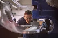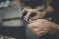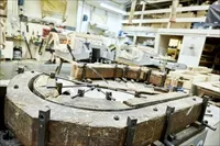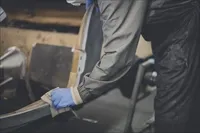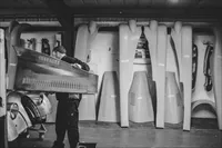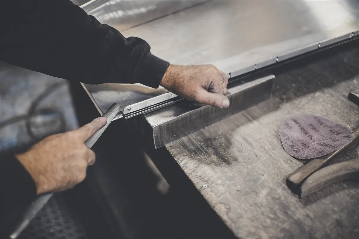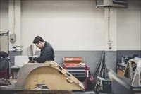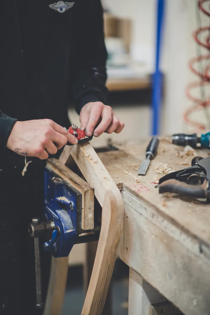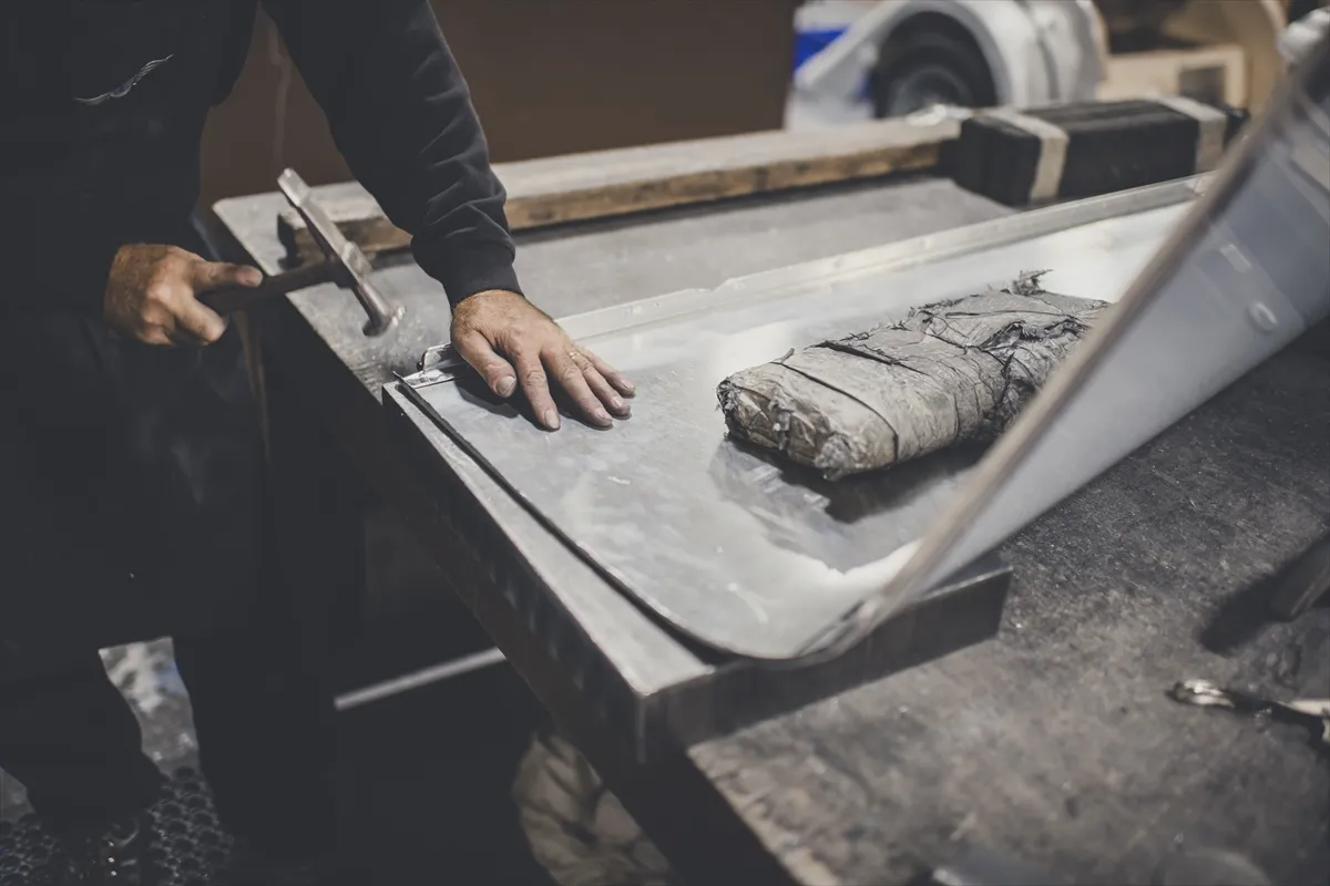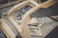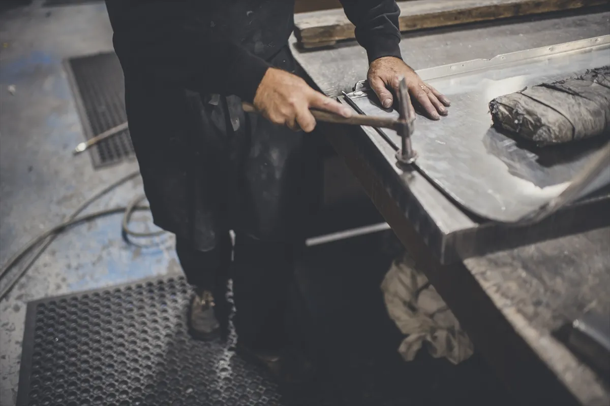 特に目を引くのは、木製パーツ部門です。ここでは、熟練の職人たちが木材を一つ一つ丁寧に加工し、サンドペーパーで削り、何度も「ちり合わせ」と呼ばれる微調整を繰り返します。その光景は、まさに伝統工芸品が生まれる瞬間を見ているかのようです。長年の歴史を物語るかのような年季の入った巨大なツールが、フェンダー用の木製パネルを丹念に形作っていく様子は圧巻の一言。