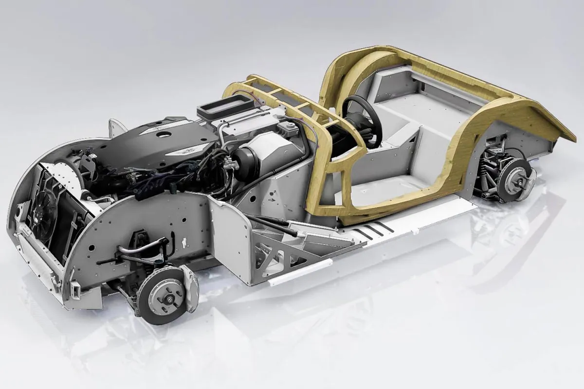 かつてのMORGANを象徴する3Wheelerや4/4といったクラシックモデルは、2019年末までに生産を終了しましたが、これらのモデルのシャーシは、剛性・耐久性を必要とする主要部分を除き、フレームに木材が使われていたことで知られています。この木材へのこだわりは、新しい時代へと続くMORGANのDNAとして、今も受け継がれています。