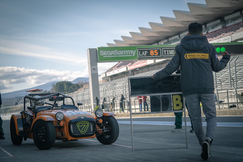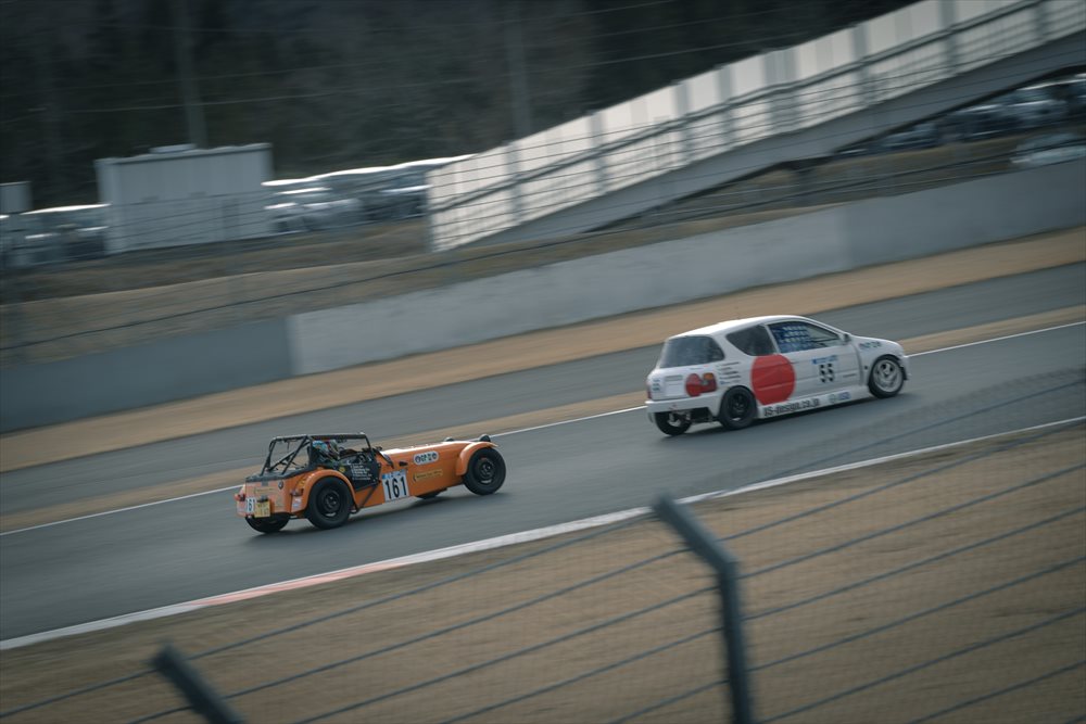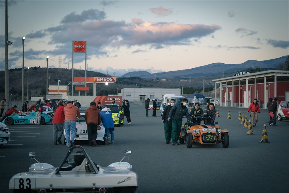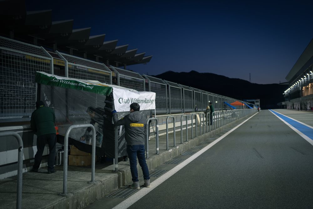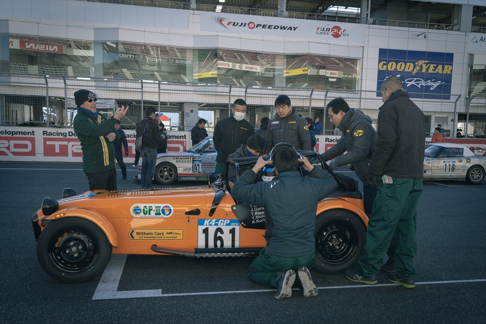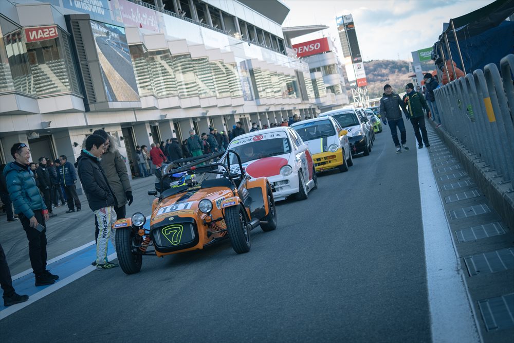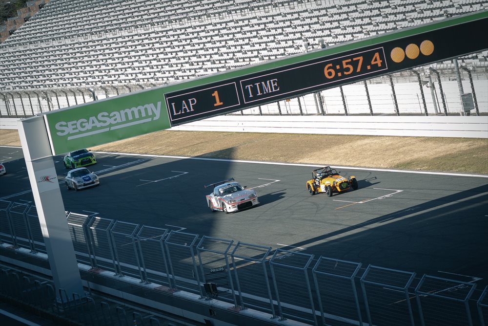 路面に凍結はなく、ドライコンディション。 まずはセーフティカーが先導して3周のフォーメーションラップです。Club Witham RacingのSEVEN 160はほぼ最後尾に近い位置からのスタートとなりました。 今年もファーストスティントを務めるのはTipo 佐藤編集長。 LOTUS CUPで共に戦い、Witham Carsとの関わりも深いドライバーです。