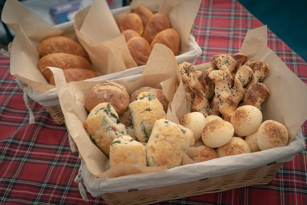 この日のメニューは、いつもイベントでお世話になっている『ブランジェリーおひさまぱん』のパン6種と温かいスープ2種。