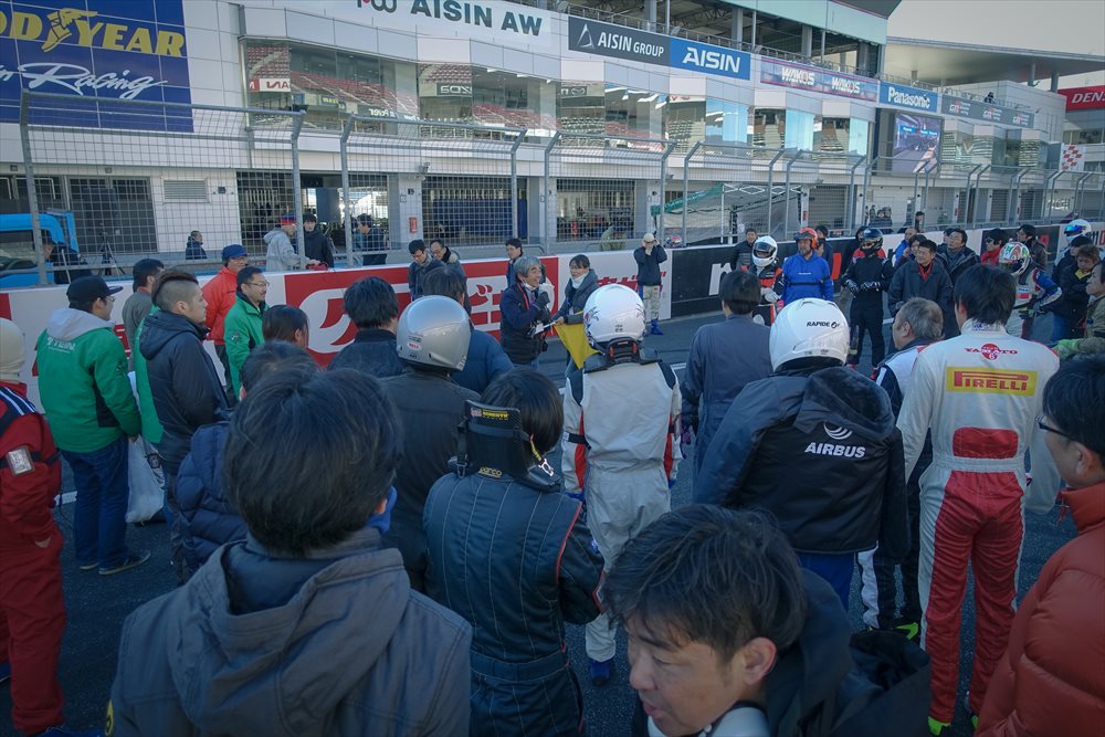スターティンググリッドに整列した後はコース上でのドライバーズブリーフィング。 万全の態勢で臨むチームメイトの表情には自信と余裕が表れており、スタート前の緊張感も心地よく感じられます。