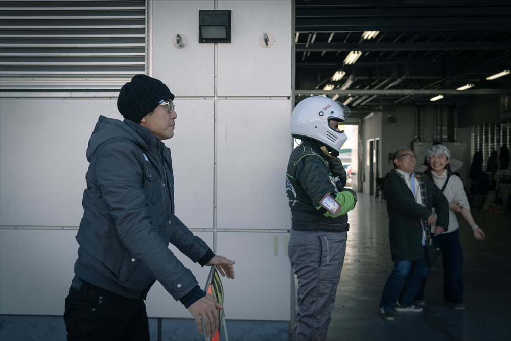 いよいよスタートドライバーを務める佐藤 Tipo編集長がマシンへと乗り込みます。予定より少し遅れてAM 8:20コースイン。