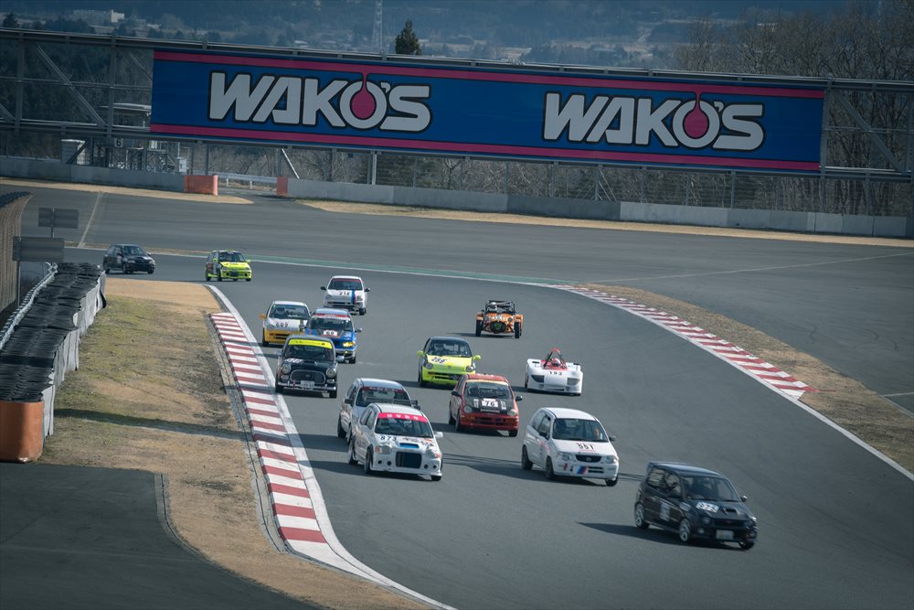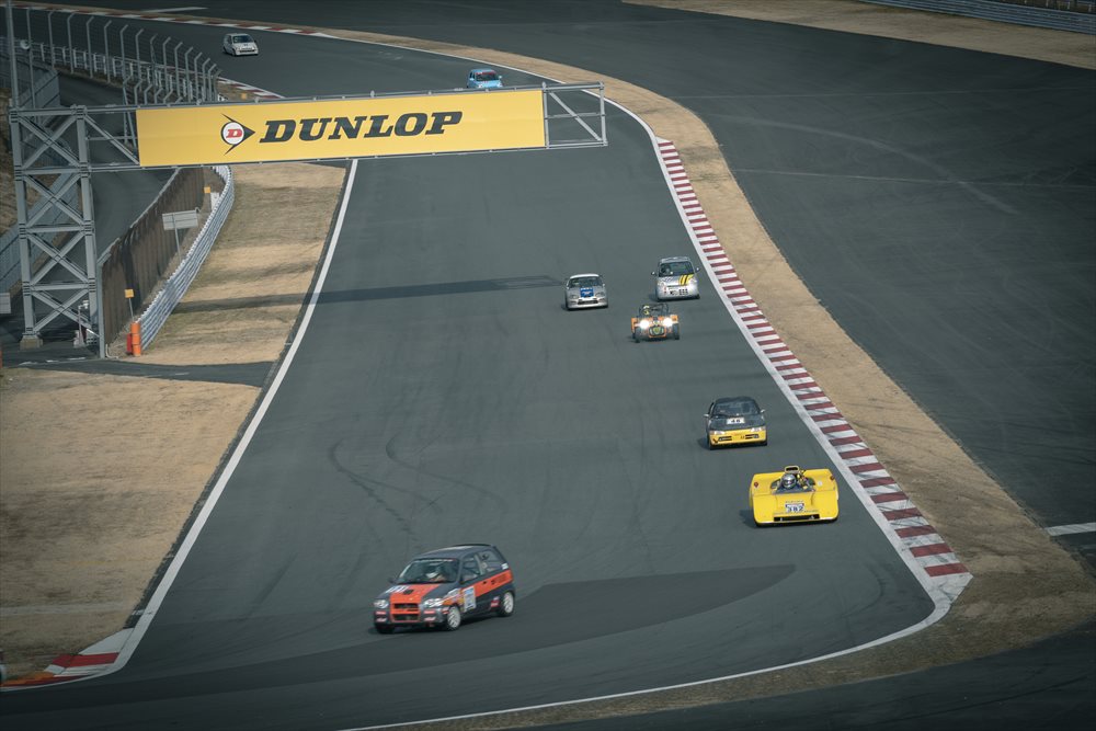 クラスもレベルも様々な120台以上の車が混走する中を抜群に安定した走りでラップを刻むTipo 佐藤編集長。