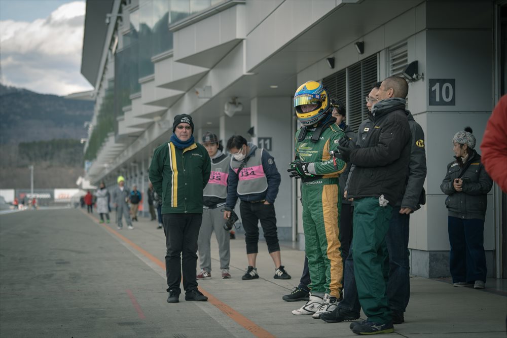 緊張した面持ちで佐藤編集長のピットインを待つセカンドドライバーはCATERHAM CARS JAPAN ブランドディレクターのジャスティン・ガーディナー。 流れるようなピット作業とドライバーチェンジで、給油からピット作業まで僅か5分ほどで完了します。
