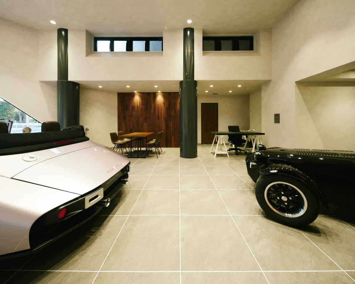 店内はオークウッドとグレーを基調に、クラシックガレージの温もりを感じながらも、現代的で開放感のあるデザインを採用。
