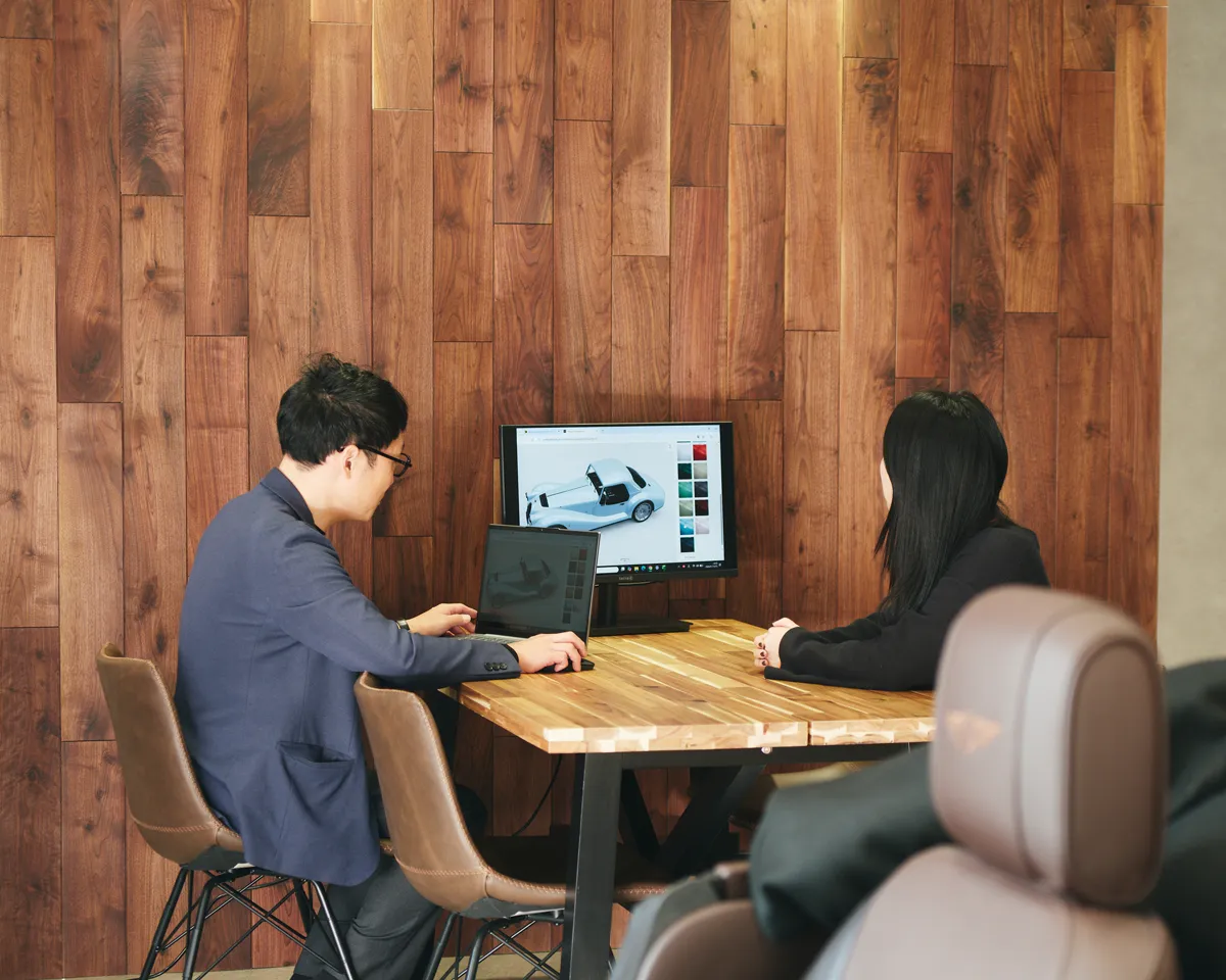 オーナーズラウンジ、商談スペース、イベントゾーンを併設し、クルマを“買う”のではなく、“語り、触れる”ための空間を目指しました。静かに、そして心地よく。モーガンと過ごす時間をお愉しみください。