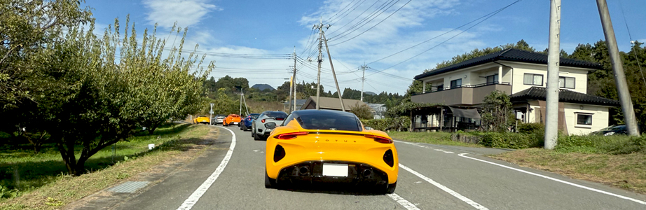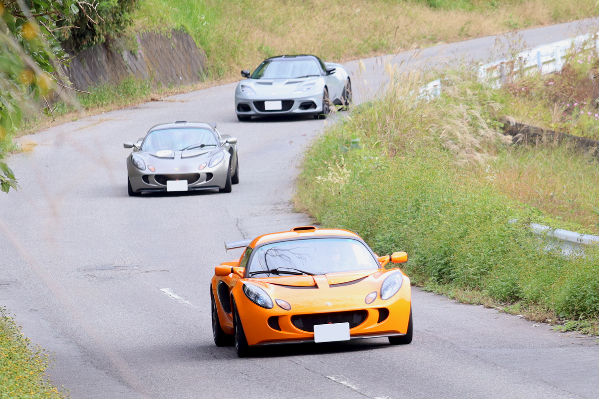 それでも見事なライン取りで小型軽量勢に引けを取らない走りを見せてくれたのは、ドライバーさまのテクニック、そしてボディサイズを感じさせないロータスならではの一体感があるからこそ。