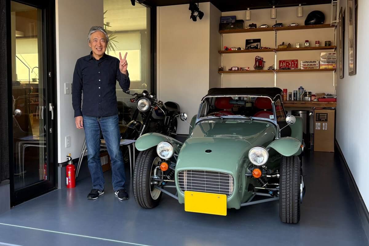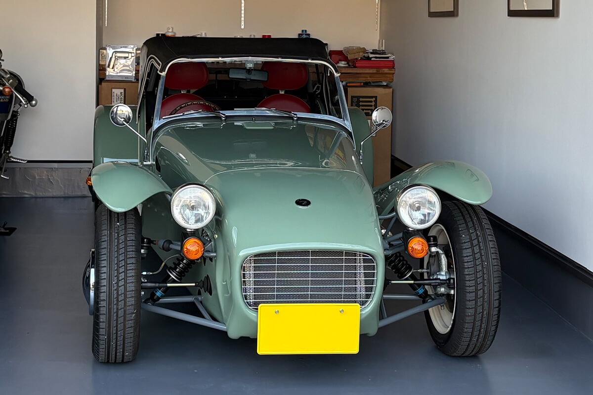 セブンのために建てられたというご自宅は、外観もガレージもまさに「趣味の空間」といえる素敵な建物でした。ガレージ内には、セブンの模型、ミニカーも並べられており、ここまでセブンを愛するオーナー様に車をお届けでき、私も大変嬉しい気持ちになりました。