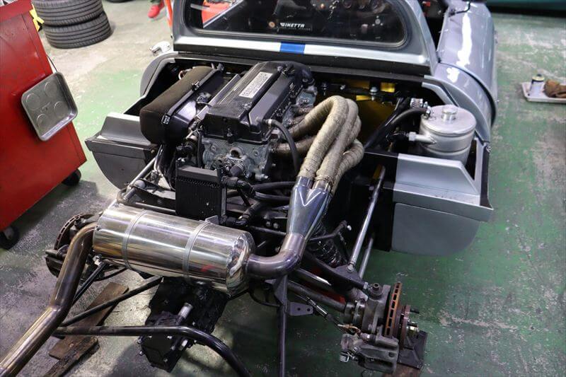 当時採用されていたエンジンは、FORD COSWORTH FVA1.6やFVC1.8、またCLIMAX FPF 2.0やBRM V8、BMW M10 2.0なども搭載され、その圧倒的なパフォーマンスはバックヤードビルダーのGINETTA CARSをトップカテゴリーにおいても揺るぎない地位を獲得したモデルです。