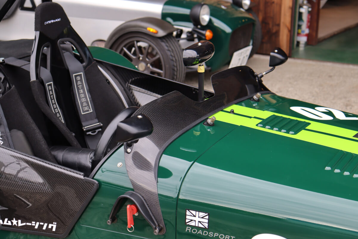 こちらの車両は現オーナー様により少しづつモディファイが進められ、当初はスタンダードなRS200でしたが、バケットシートやワイドトレッドサスペンションアーム等々後からモディファイして、今ではSuperLight顔負けの仕様となっています。オーナー様の好みに合わせて色々交換できるのもCATERHAMの良いポイントですね。