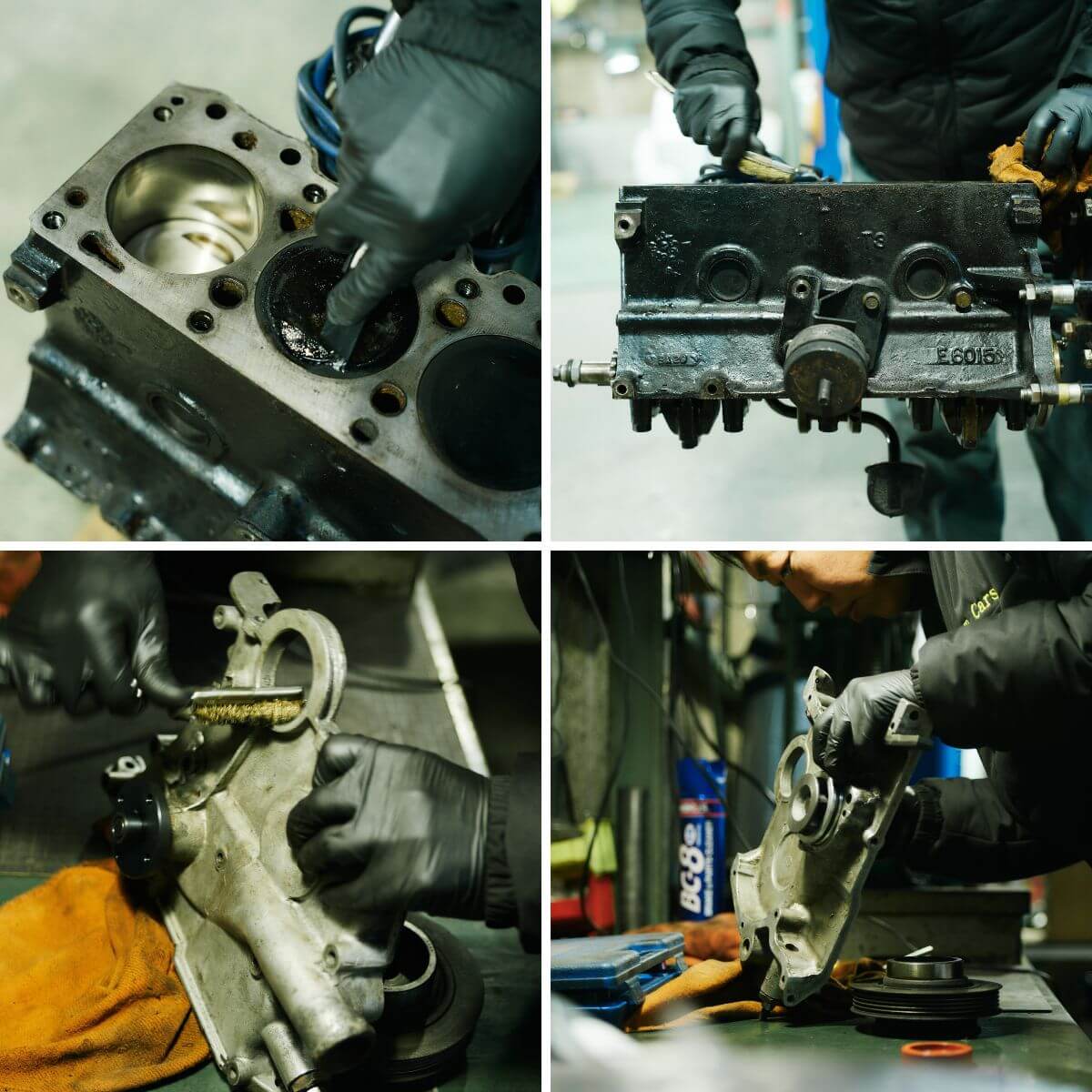 シール類が触れる面は徹底的に清掃を行い、次のオーナー様に気持ち良くLOTUS製エンジンを堪能して頂けるよう、丁寧に組上げていきます。