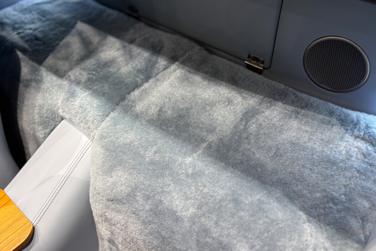 昨年6月、ディーラー訪問のため来日した本国MORGAN CARSの営業統括責任者である、Jack Woodgate氏も、このラムウールカーペットを指して、「ここは、ぜひ注目してほしい」と語っていました。PINNACLEの価値を語るうえで、重要かつ象徴的なディテールのひとつです。