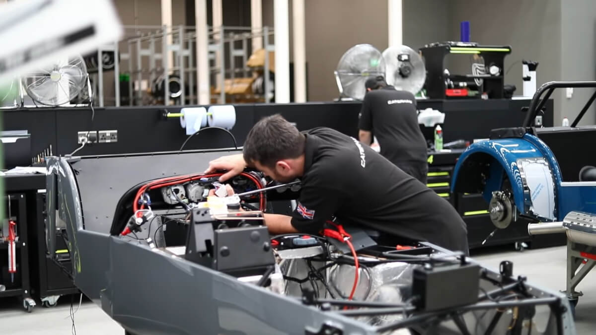 車両のペダルボックスに付いているビルダーサインを調べていたところ、なんとケータハムの新工場紹介動画に、その本人が登場していたとのこと。
