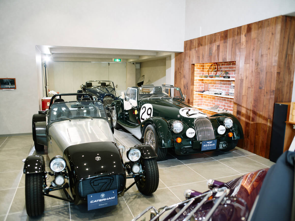 本日のMorgan/Caterham板橋ショールームはタイトルの通り、MORGANが3台、CATERHAMが1台のレイアウトとなっています。