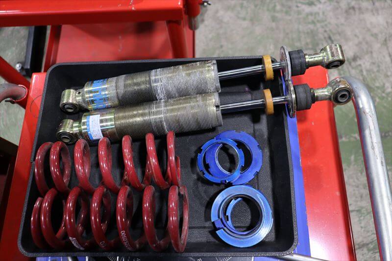 オーナー様はELISEを購入以来、着実にモディファイを進め、趣味のサーキット走行寄りの車両に仕上げて参りました。この度は更なるタイムアップと好みのハンドリングにする為、スプリングレートの変更とアライメント調整を行います。装着されていたサスペンションの特性を損なわない程度のバネレート変更ですが、走りはガラッと変わってくれるはずです。