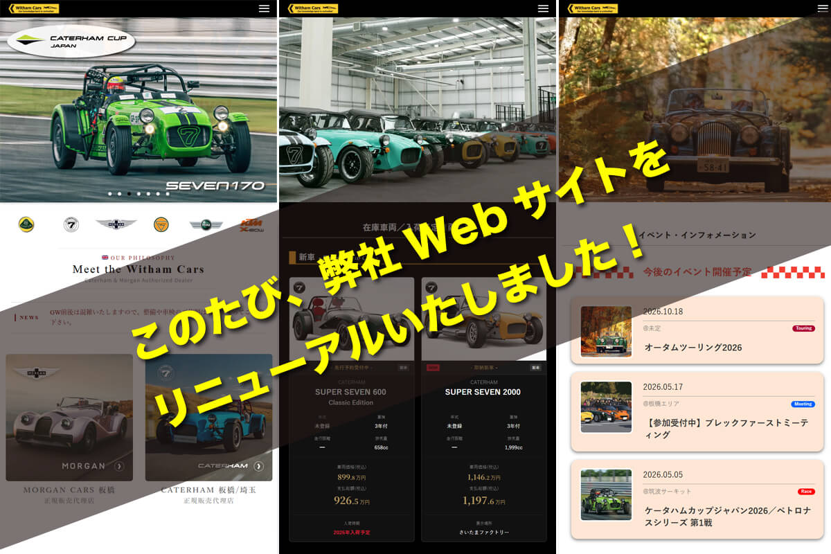 新しいサイトでは、弊社のこだわりやイベント情報、販売車両の情報、最新のニュースなど、よりダイレクトに、より美しくお伝えできるよう工夫を凝らしています。