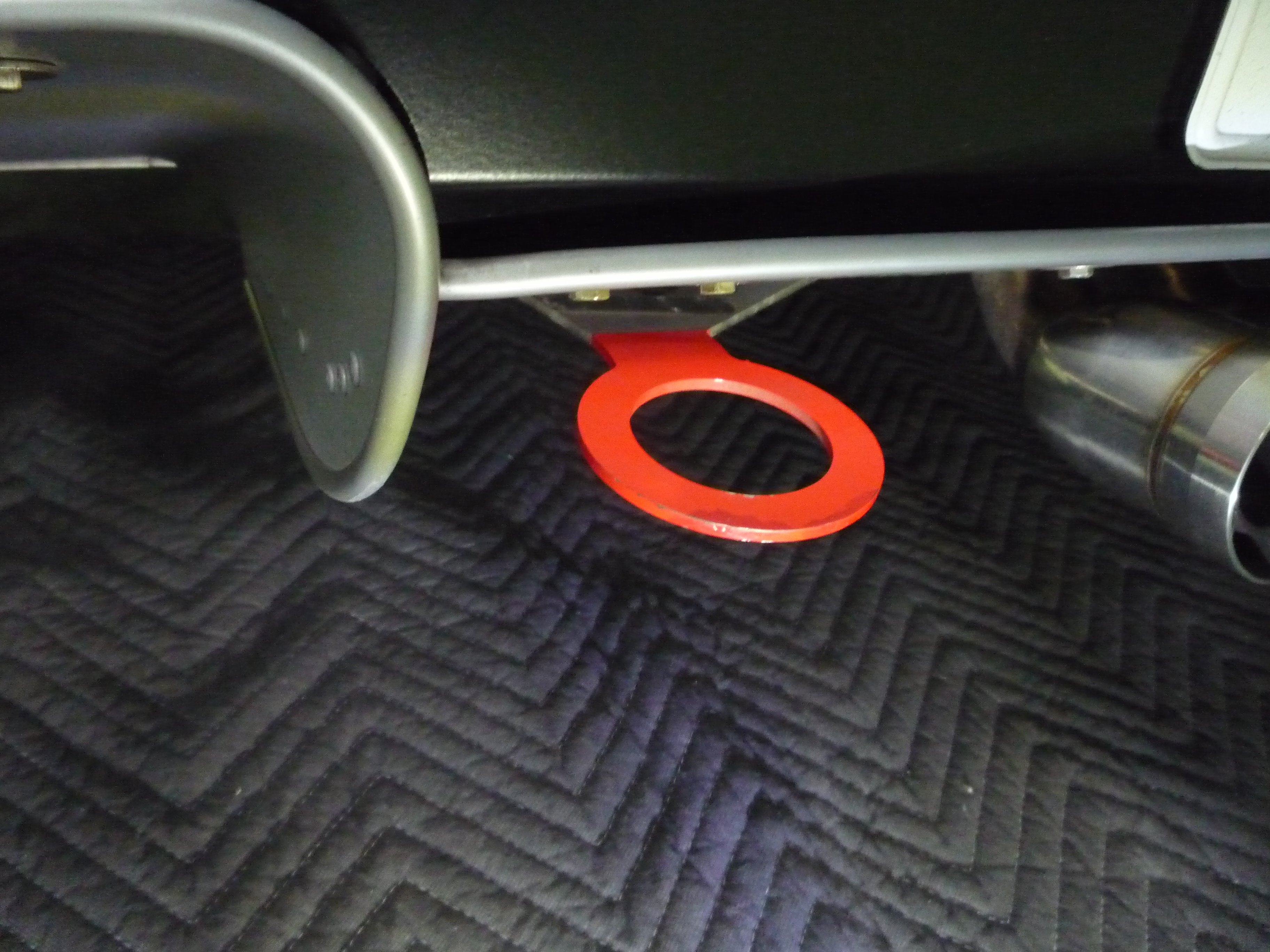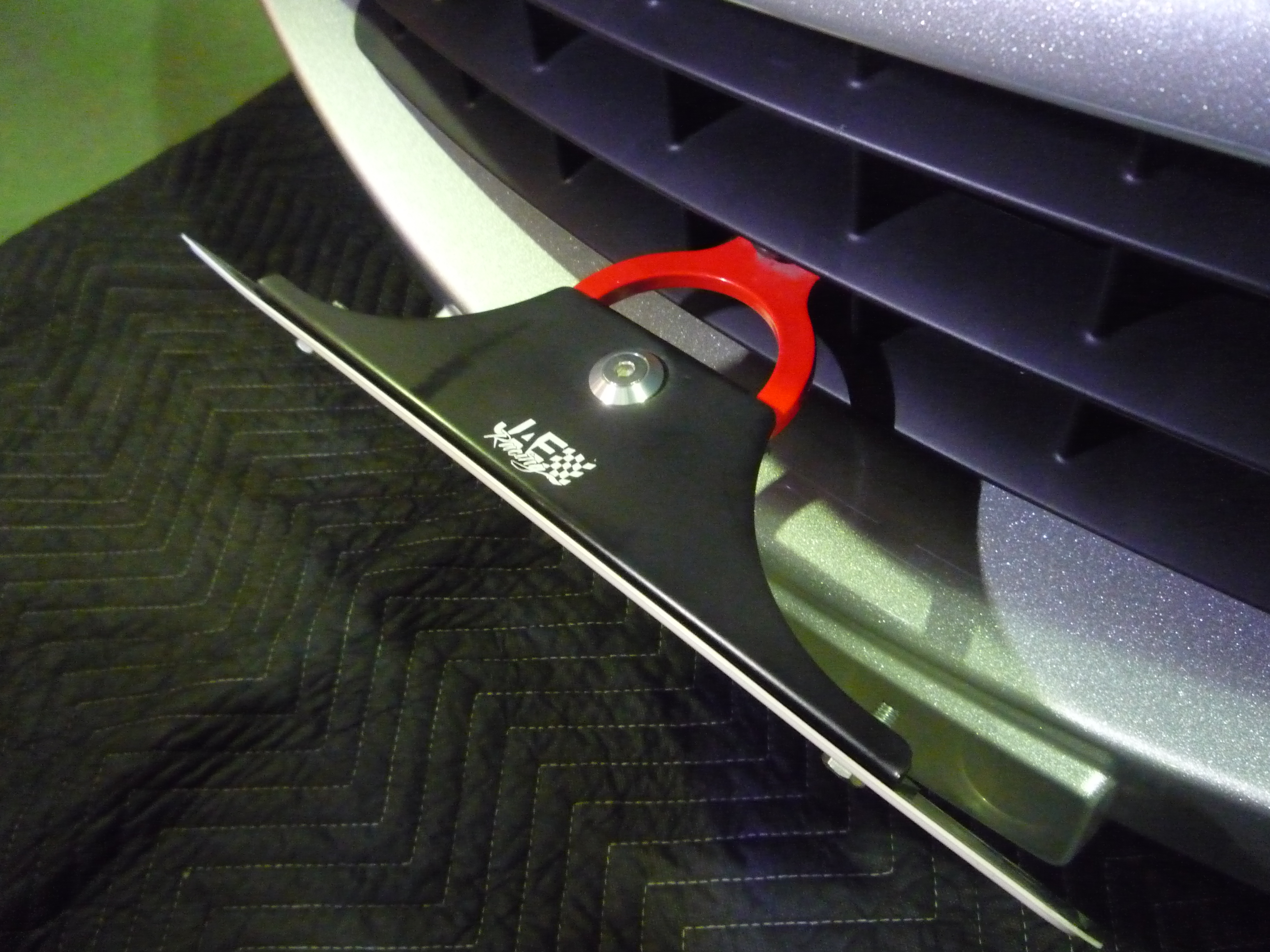 まずはこちらの前後の牽引フックです!こちらはもちろん車両を牽引するためのものですが、断然サーキット派!というオーナー様に限らず、たまにサーキット走行を楽しまれている方にも是非装着して頂きたいアイテムの一つです。