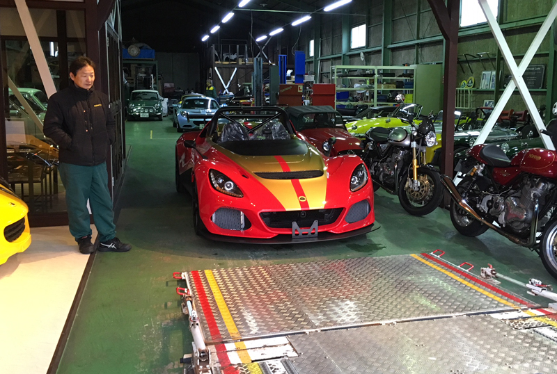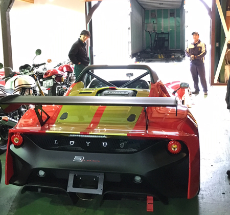 3-ELEVENは屋根が無い為、輸送も完全に囲われているトランスポーターにて特別輸送となります。今回の車両はシグネチャーペイントのレッドxゴールドストライプ。3-Elevenのスタイリングによく似合いますね。