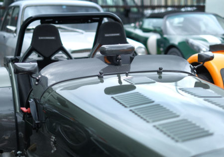 今回は、Caterham Superlight R300のウィンドスクリーンのカーボンレーシングスクリーンへの換装です。同時にセンターミラーとサイドミラーもカーボン製を取り付けます。