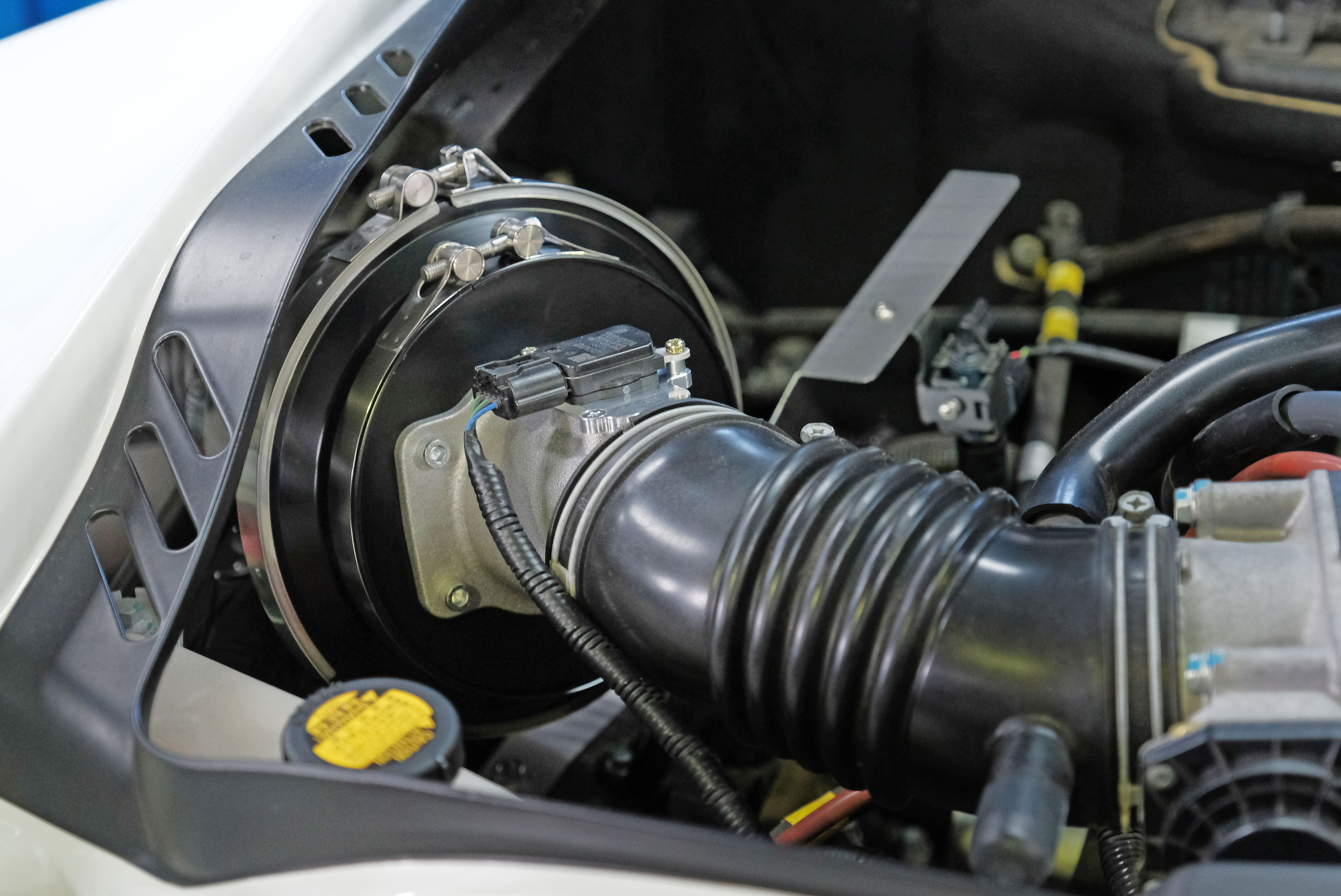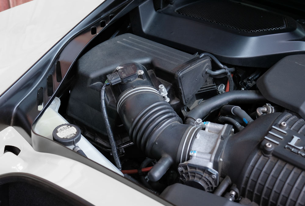 交換後はエンジンルームがスッキリします。パワーアップに留まらず、アクセルを踏み込んだ時の迫力ある吸気音や軽量化にも貢献します。