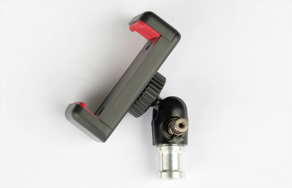 そこでカメラを三脚に取り付けるための自由雲台と、スマートフォンを三脚にマウントするためのクランプを組み合わせて使用することにします。
