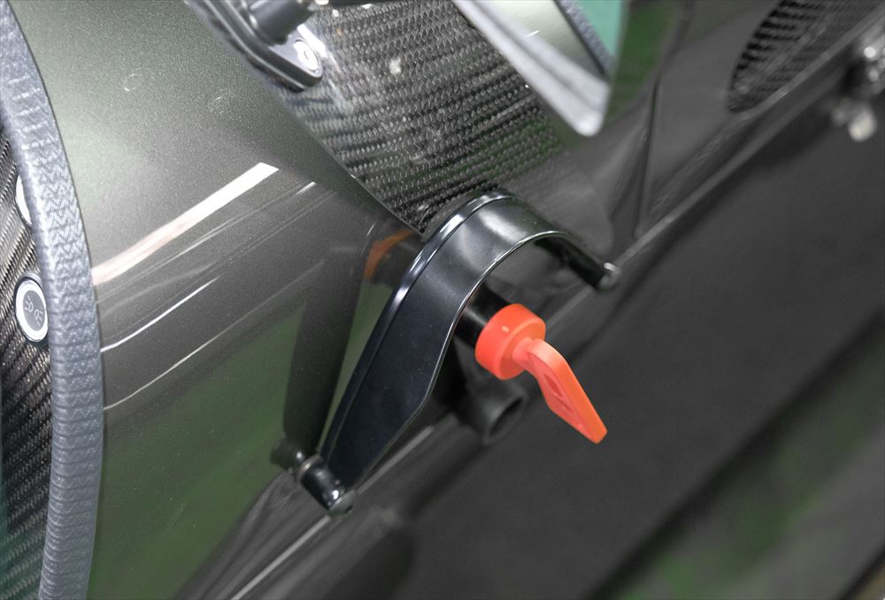CATERHAMの場合はメーターパネルに市販のホルダーを貼り付けたり、ウィンドスクリーンに吸盤式のホルダーが一般的ですが、今回は出来るだけ目立たない位置に取り付けたいというご要望です。