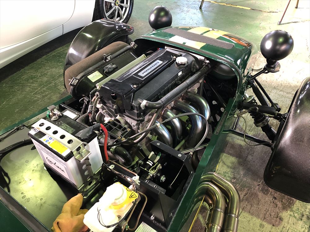 車検でご入庫のCaterham Roadsportのタイミングベルトの交換を行います。