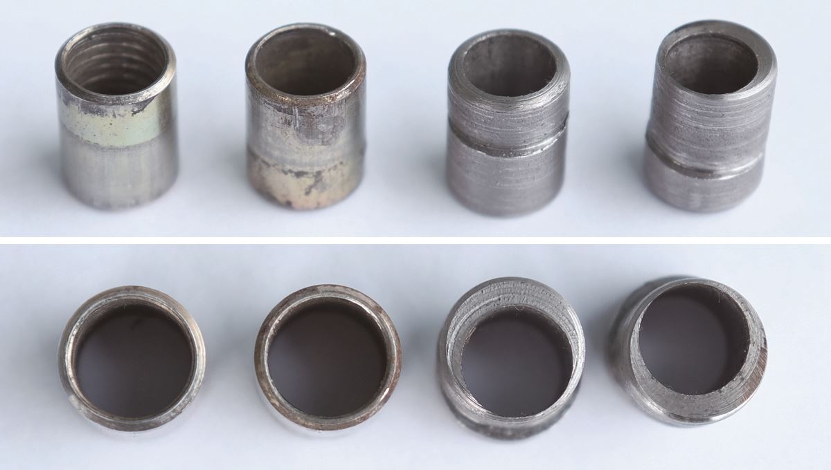 突然ですが、これは何に見えますでしょうか?左2個は純正で、右側の2個が今回新たに製作したもの。これらはエンジンとトランスミッションの位置決めをするドゥエルピンなんです。