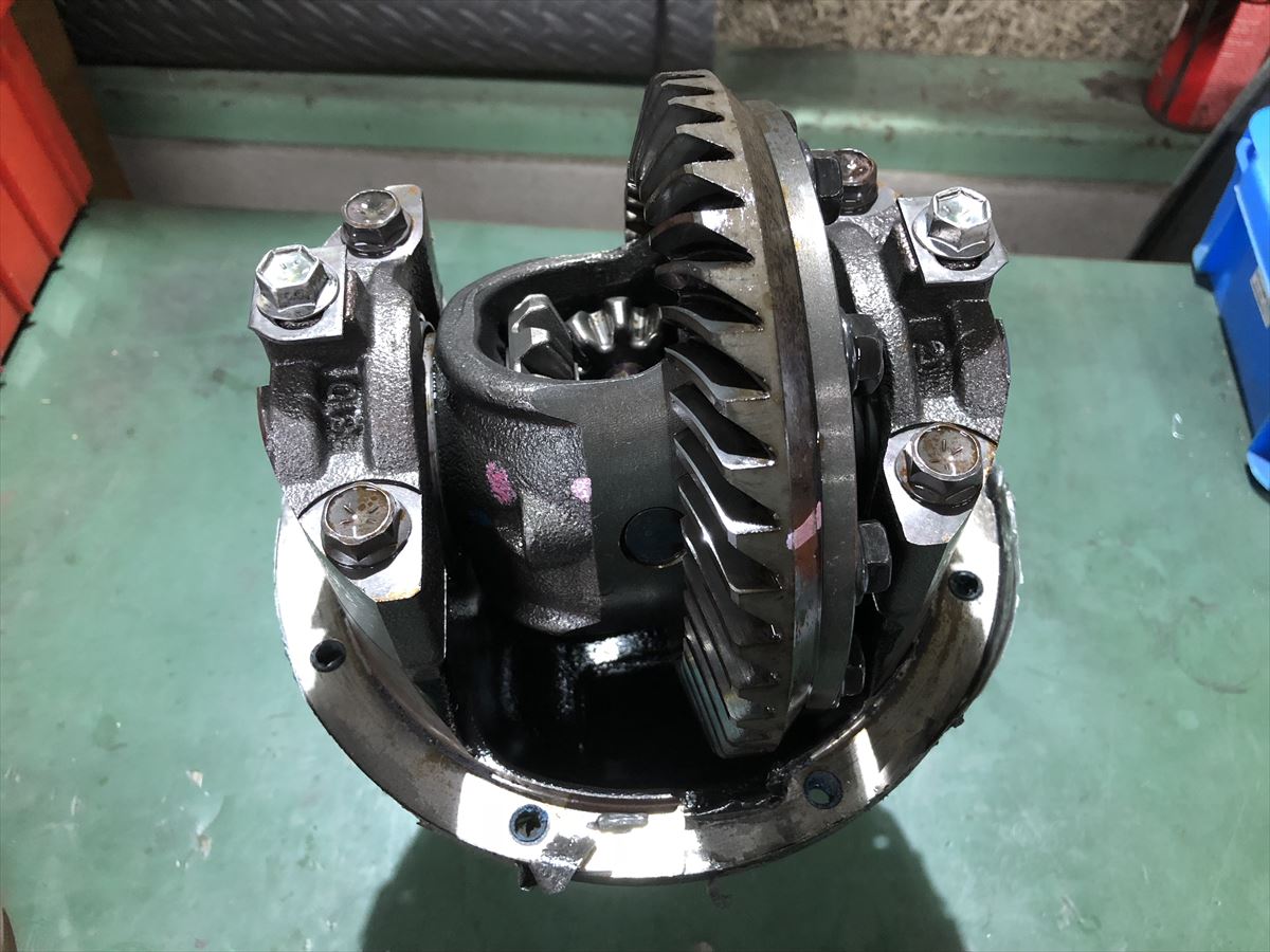 ホーシングから取り出したデファレンシャルギアです。高い負荷がかかるため、660ccエンジンの160用と言えどかなり強度のあるギアが使用されています。