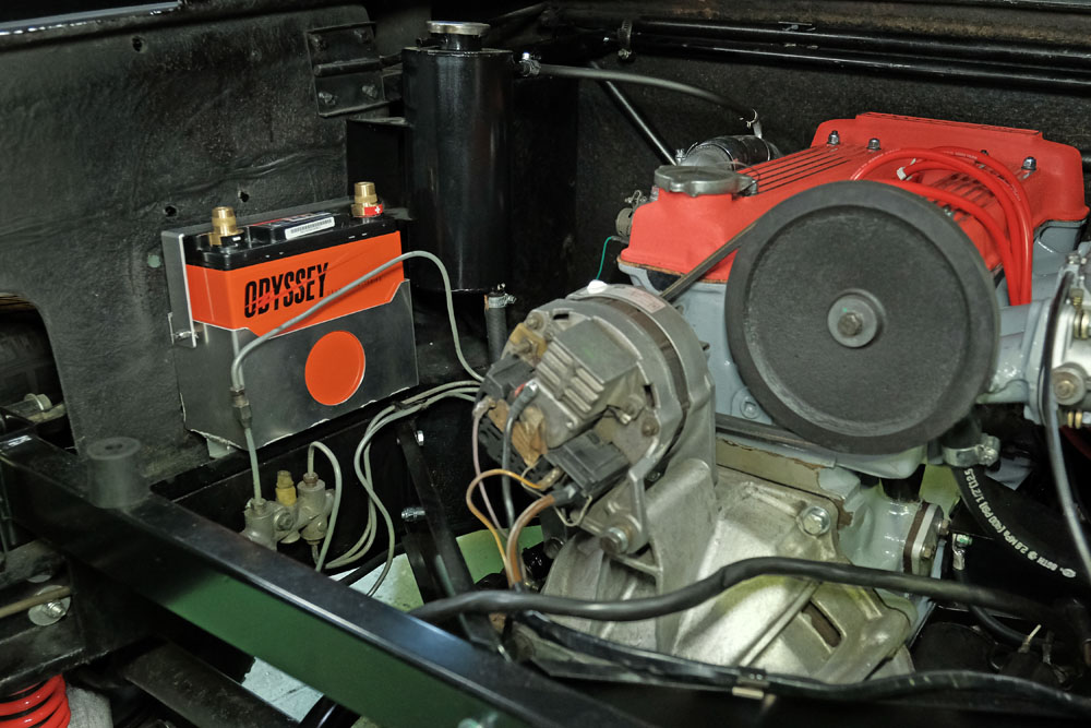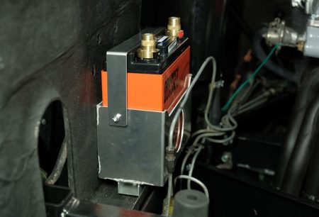 バッテリートレイもこの車両のためにアルミで専用品を製作しました。バッテリーはコンパクトかつ安定した性能を発揮するオデッセイのドライセルです。