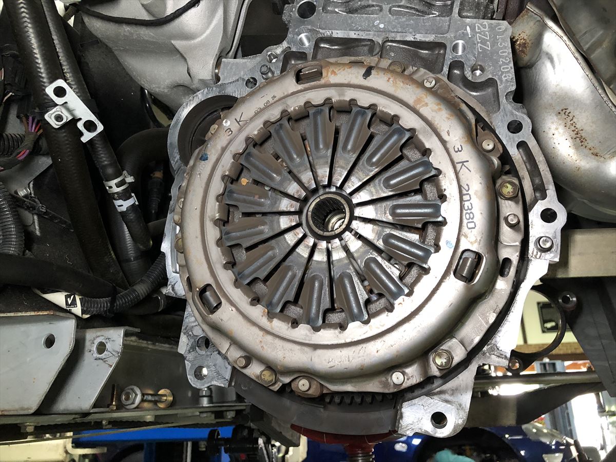 ミッションを下ろして、クラッチを点検していきます。