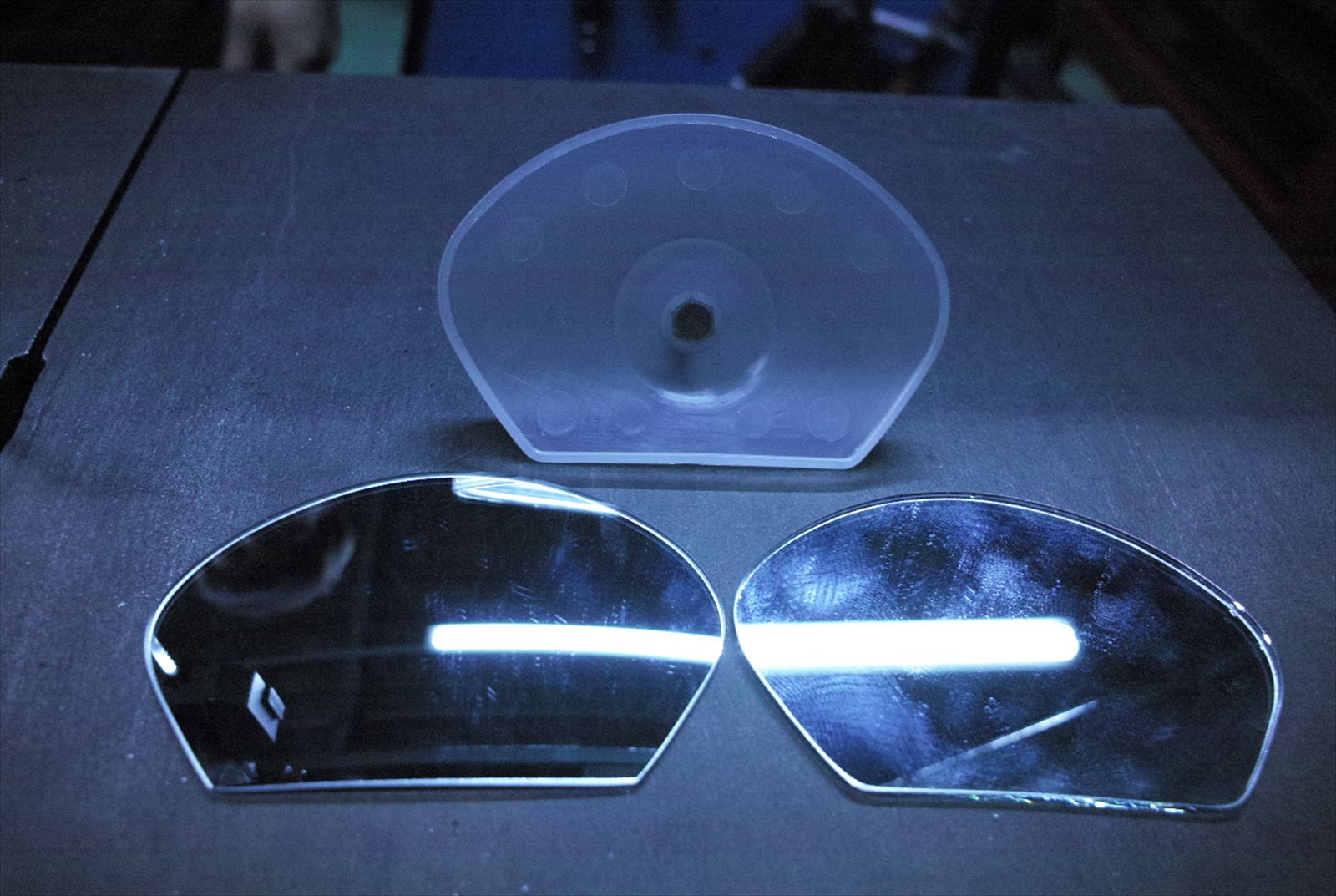 上の半透明な透明な枠によって、ミラーがハウジングに固定されています。にしっかりとはめ込まれていました。