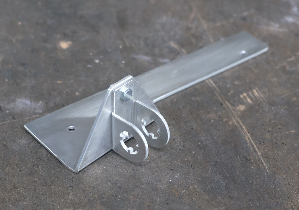そしてメインプレートとバックプレートを組み合わせます。画像では見えませんが、リベットで仮組みしたあと溶接して組み立てています。ハードなサーキットユースも考慮して設計していますから、非常に軽量でありながらしっかりと踏ん張ることが可能です。
