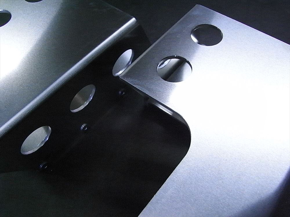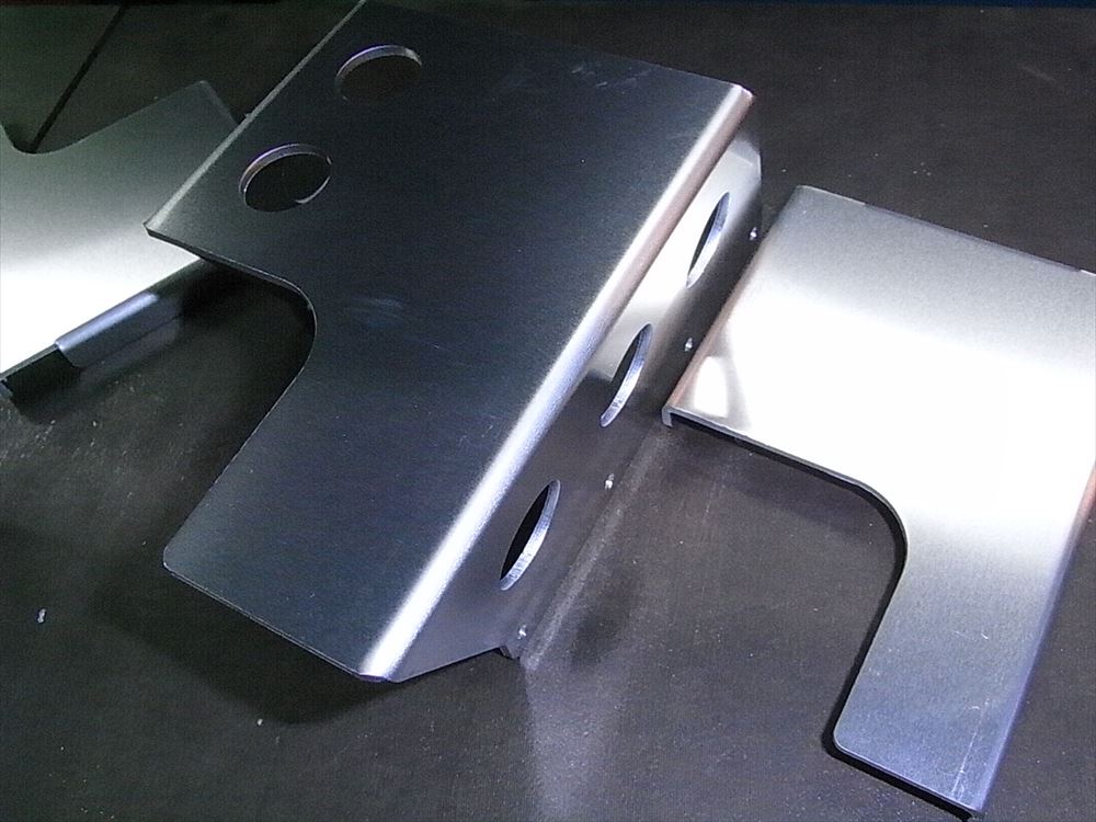 弊社で設計した図面を元にレーザーでカットし、曲げ加工を行ったものが上の写真です。両端に写っているのはバックプレートになります。