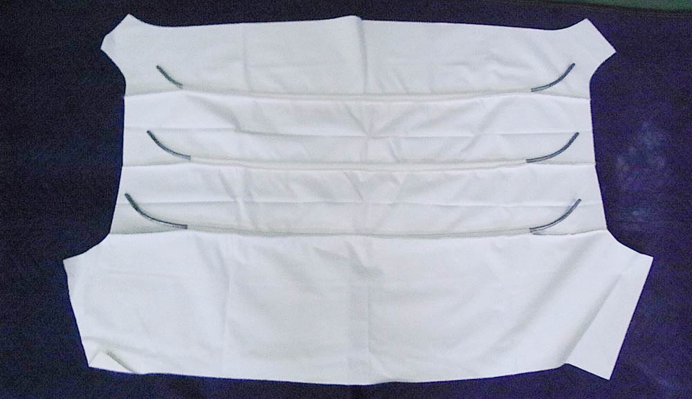 こちらが新品のライニングです。3本のスチール製のパイプが骨として挿入されています。気に入った車と長く付き合っていく上で、こんなパーツがまだ新品で入手可能ことも嬉しいポイントではないでしょうか。