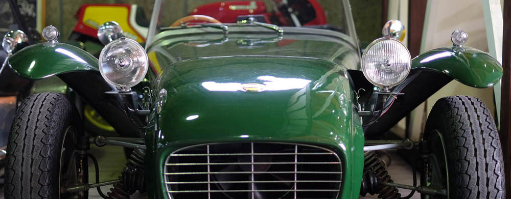 余談ですが、こちらはロータス セブン シリーズ2 (1962)。この頃は小ぶりなヘッドライトだったんですね。左右でレンズカットが異なるのが特徴です。