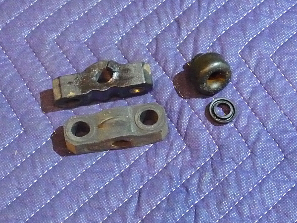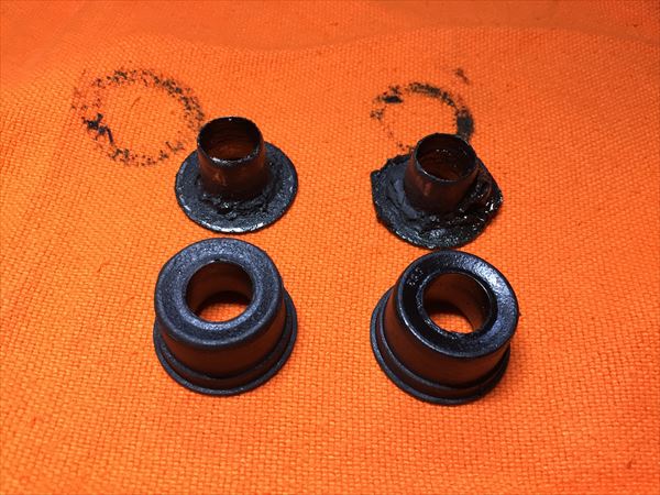 上のカラーだけ残っているのが取り外したブッシュ、下が新品です。