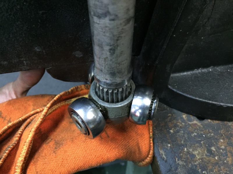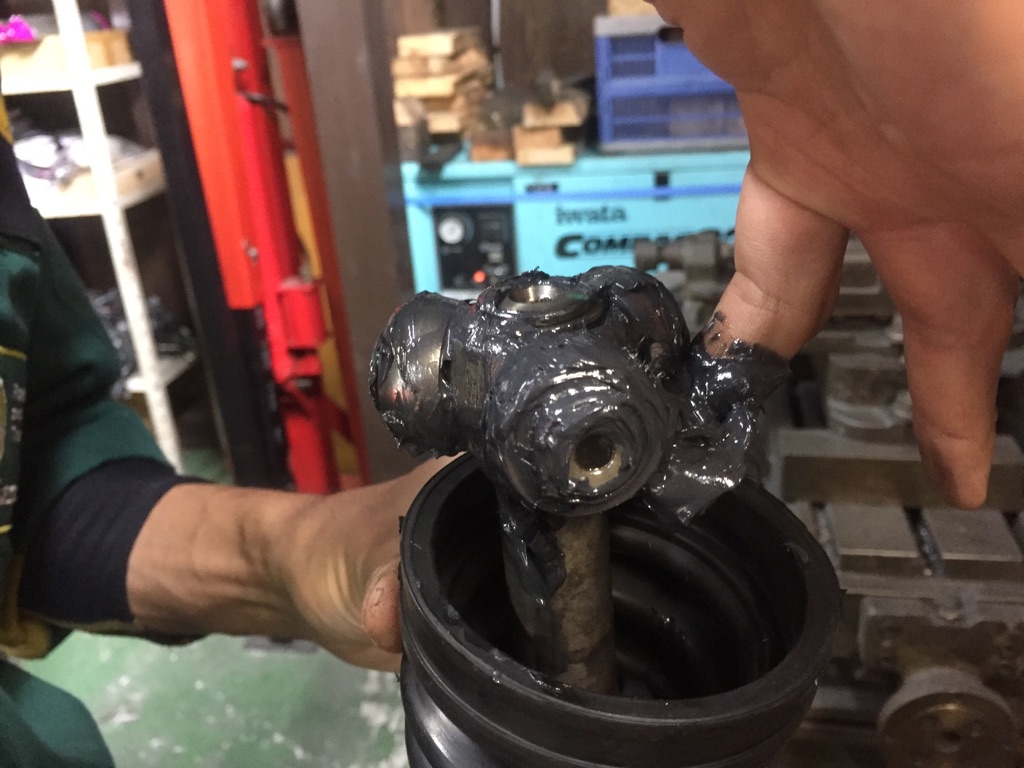 トランスミッションと連結するポットジョイント側の古いグリスの清掃をしたら、異常な磨耗がないか点検していきます。