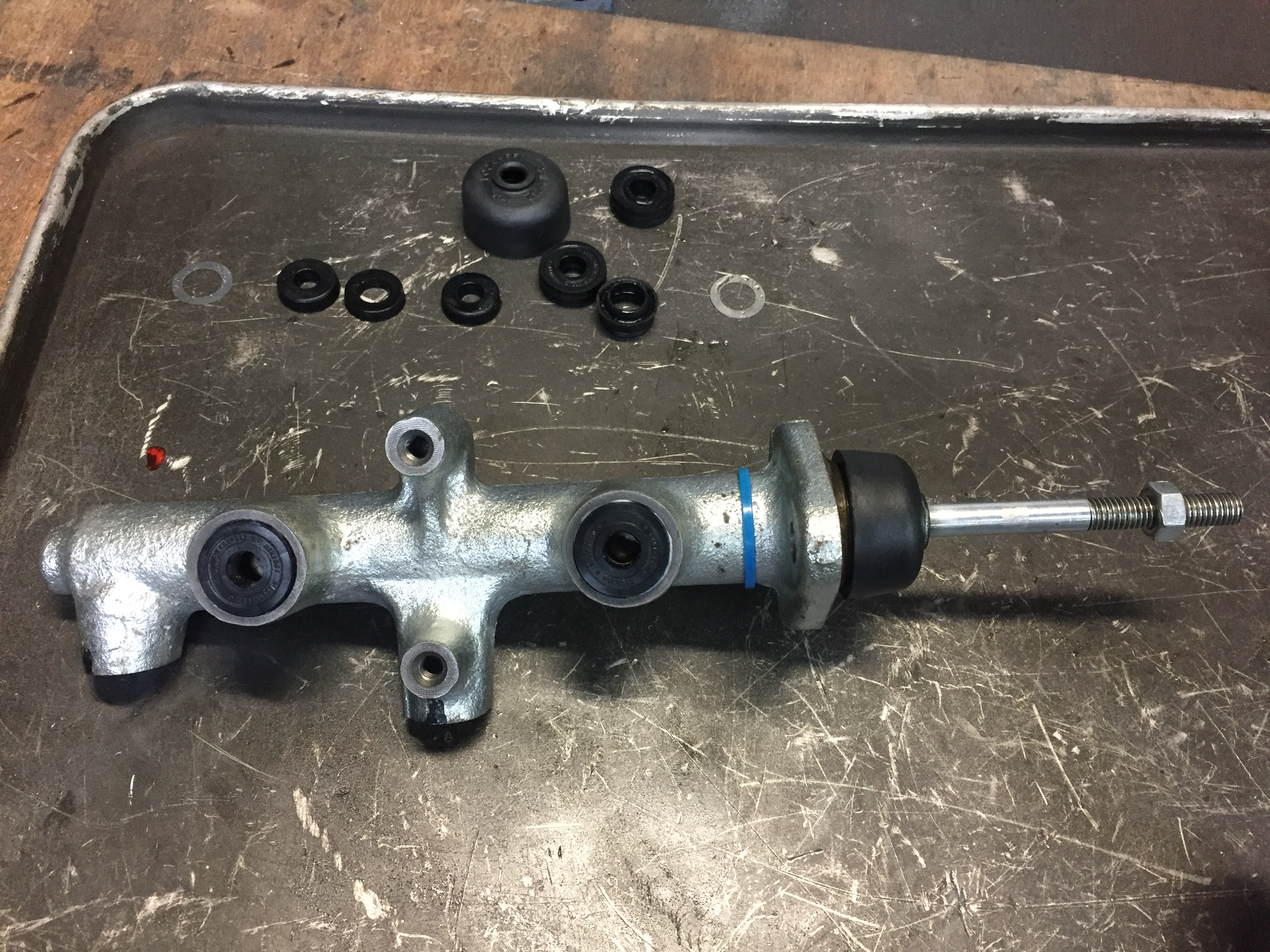 こちらの車両は今までスタンダードだったガーリング製のブレーキマスターではなく、新しいタイプのAP製のブレーキマスターでしたので、O/Hキットは取り寄せでの作業となりました。