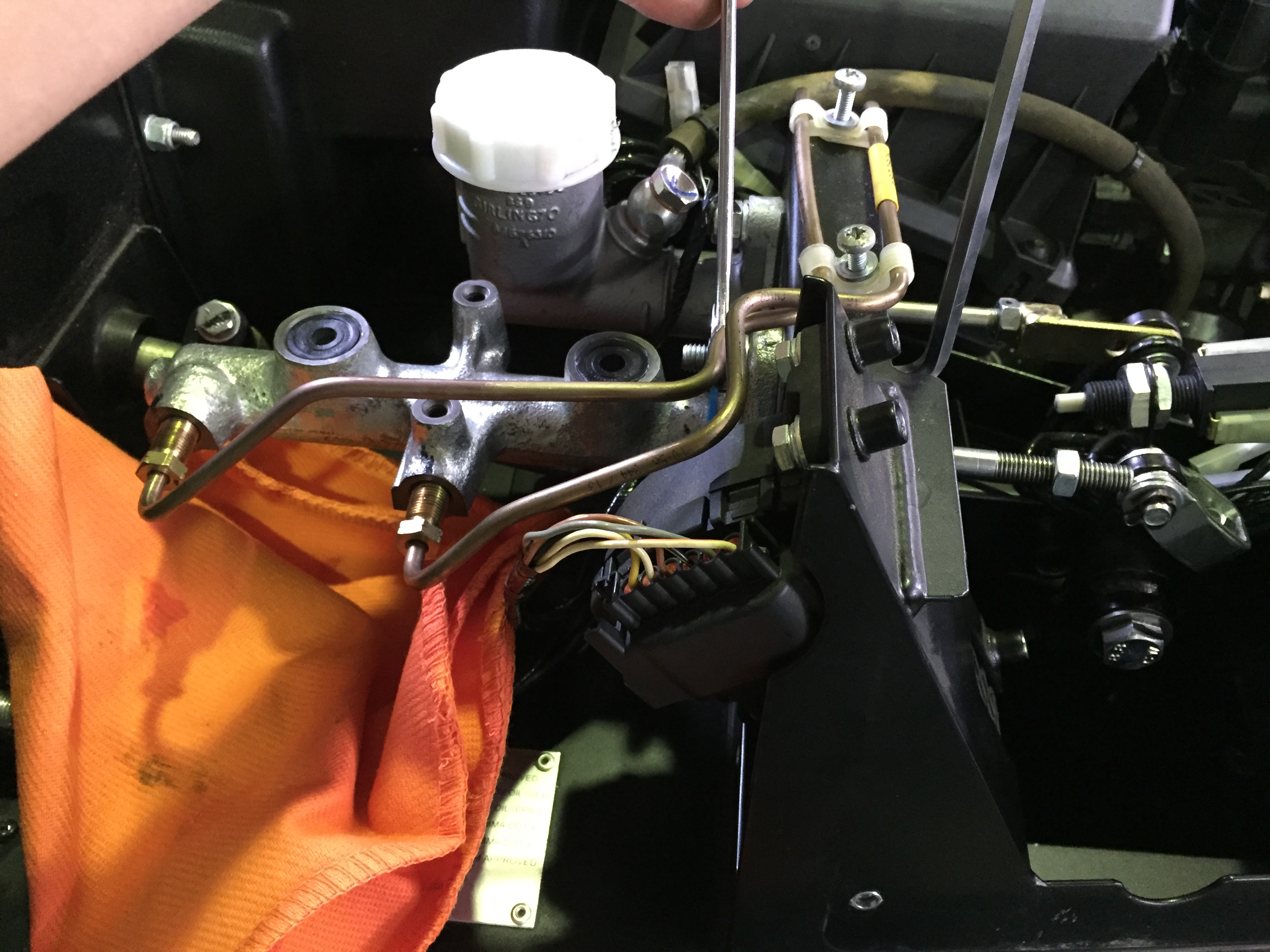 今回はスーパーセブン・ロードスポーツ200のブレーキマスターのオーバーホールを行いましたので、紹介させていただきます。お客様からブレーキのタッチに違和感があるとのご相談で点検したところ、ブレーキマスターからのオイル漏れが見受けられました。