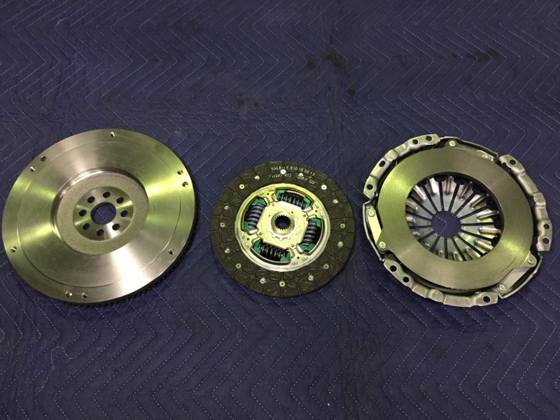 こちらが新品のクラッチ及び、フライホイールです。ボルト類も全てAPRの強化パーツに変更しました。