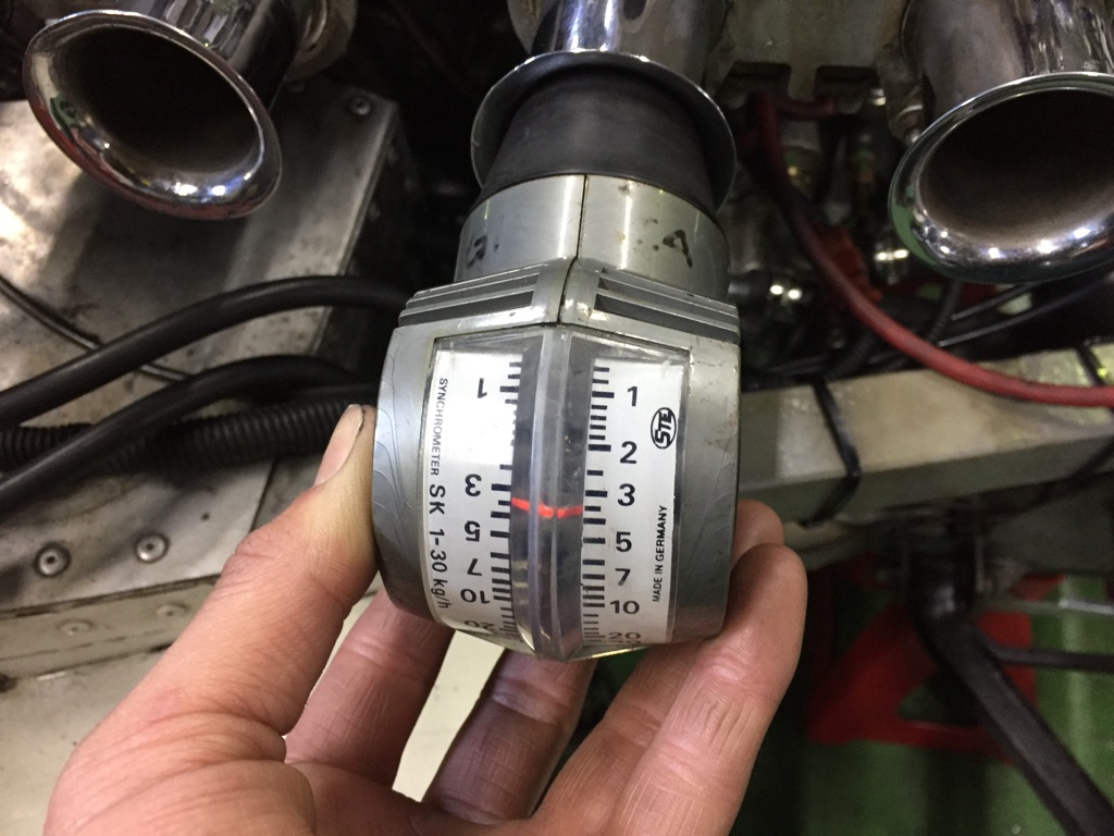 左右のキャブレターの同調と、ミクスチャの調整を行い、クラッチの作動とオイルの漏れが無いか等入念にチェックしていきます。