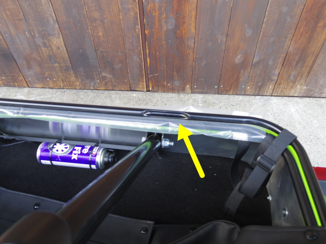 ソフトトップを展開した時、ロールケージのパイプと幌骨の接触を防ぐための工夫でした。つまりこのロールケージは
