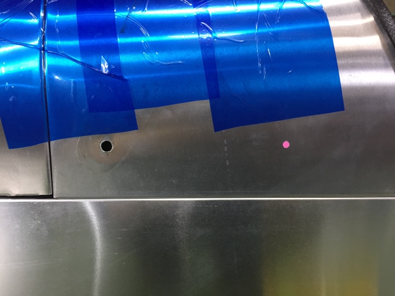 穴あけ加工は特に慎重に行います。アルミパネルと切子が擦れるだけですぐに傷になってしまうので、ドリルの刃を立てる場所にも養生が必要です。