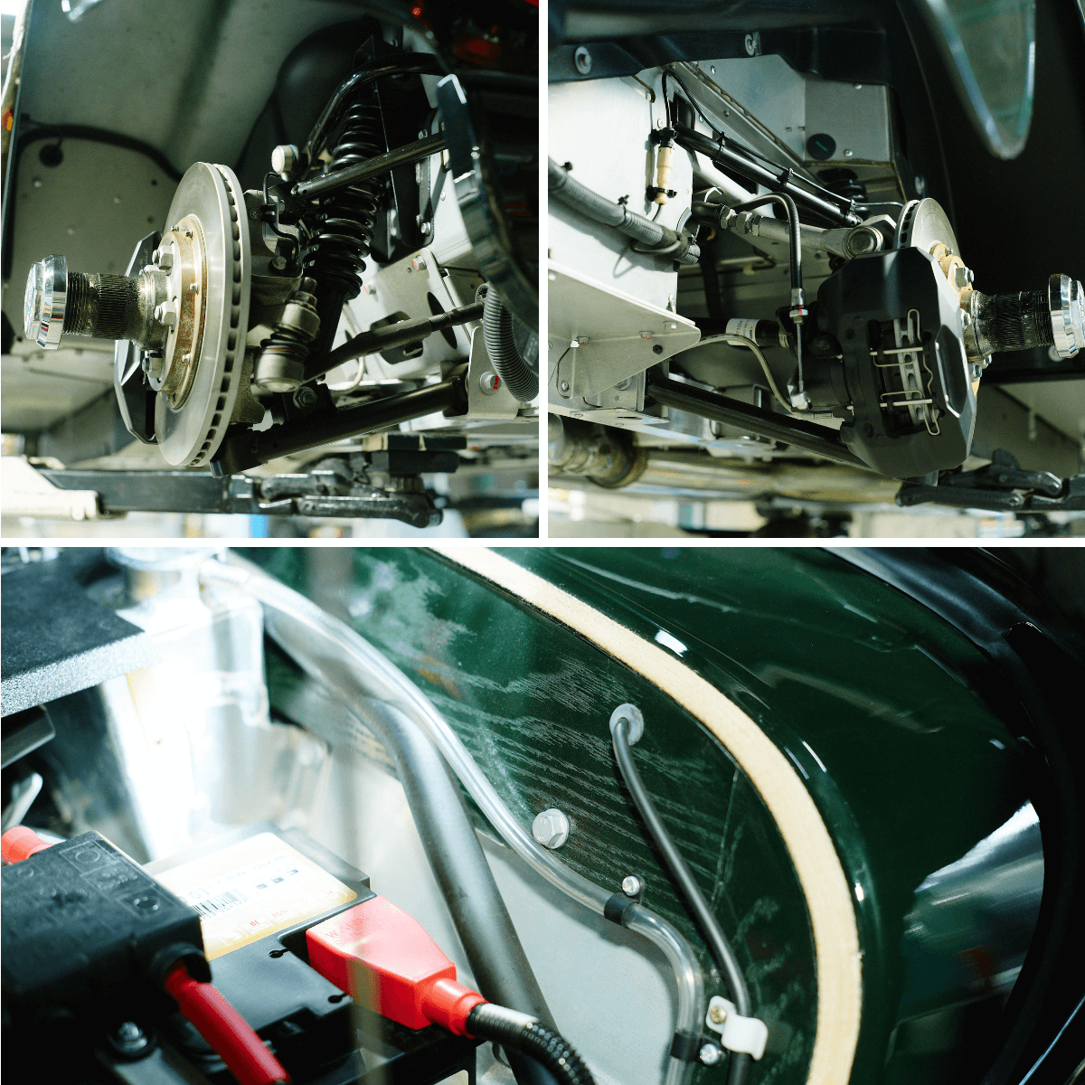 エレガントなアルミフェンダーや、ボディ筐体を支える木製ストラクチャこそクラシカルな現行Plus Fourですが、先代Plus 4でや4/4から刷新されたより高剛性のCXシャーシに加え、前後にダブルウィッシュボーン式サスペンションが奢られました。