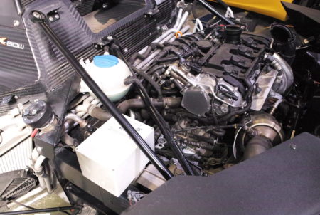 ダンパーの右上にあるのが交換したハイドロマウント。このようにエンジンを支えています。