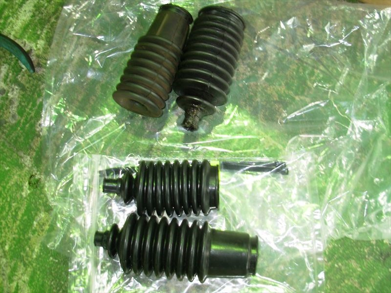 まずはステアリングラック・ブーツ、車検時に交換となる代表的なパーツですね。これ以外にもタイロッドエンドのダストカバー等も、足回りで頻繁に交換するパーツです。